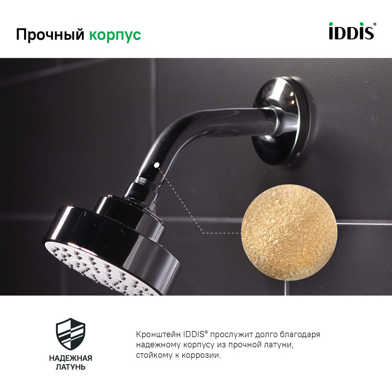 Компактный (длина всего 132 мм) кронштейн для душевой зоны небольшого размера. Крепежные элементы скрыты корпусом кронштейна, что обеспечивает привлекательный и аккуратный внешний вид. ● Хромированное покрытие душевых аксессуаров IDDIS® устойчиво к коррозии, появлению царапин, сколов и потускнению. На протяжении многих лет они будут выглядеть как новые. ● Лучше всего совместим с компактными душевыми насадками IDDIS® (артикулы 008MINPi64 и 007MINPi64). ● Стандартное резьбовое соединение G½. ● Гарантия на душевые аксессуары IDDIS® – 3 года. (с) Авторский текст, ноябрь 2020 г.