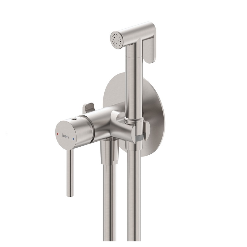 Встраиваемый смеситель с гигиеническим душем Axes в трендовом оттенке матового никеля – практичный и стильный, его дизайн сочетает в себе трендовый минимализм форм и округлые формы. Имеет крючок для полотенца, который можно установить как слева, так и справа, меняя местами с держателем для лейки. Душевой шланг с защитой от перекручивания в комплекте (длина 1,2 м). • Гигиеническая лейка очень компактная, но при этом она комфортно и уверенно ощущается в любой руке – благодаря тому, что изготовлена из увесистой латуни. Устойчива к коррозии, переносит перепады давления и температуры воды. Универсальна: можно использовать не только для личной гигиены, но и в качестве гидроерша для мытья унитаза. • Пластиковая проставка в держателе лейки защищает поверхность гайки шланга от царапин и крепко держит его в держателе. • Экономит пространство и упрощает уборку — благодаря скрытому монтажу в стену (на глубину 41–53 мм) и отсутствию больших выступающих элементов конструкции. Подключается с помощью любых труб, диаметр входных отверстий ½ дюйма. • Смеситель прослужит долго благодаря надёжному корпусу из прочной латуни, стойкому к коррозии, резким изменениям давления и перепадам температуры воды. • Плавный ход ручки и абсолютная точность регулировки температуры и напора воды — за счёт качественного керамического картриджа IDDIS®. Гарантия на смесители IDDIS® – 10 лет, на лейку и шланг – 3 года. (с) Авторский текст, январь 2026 г.