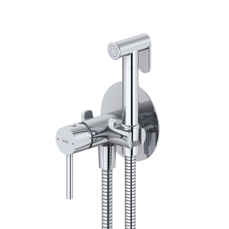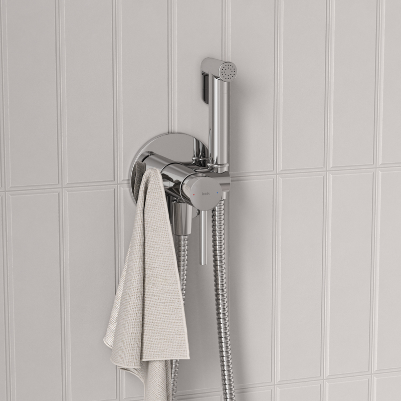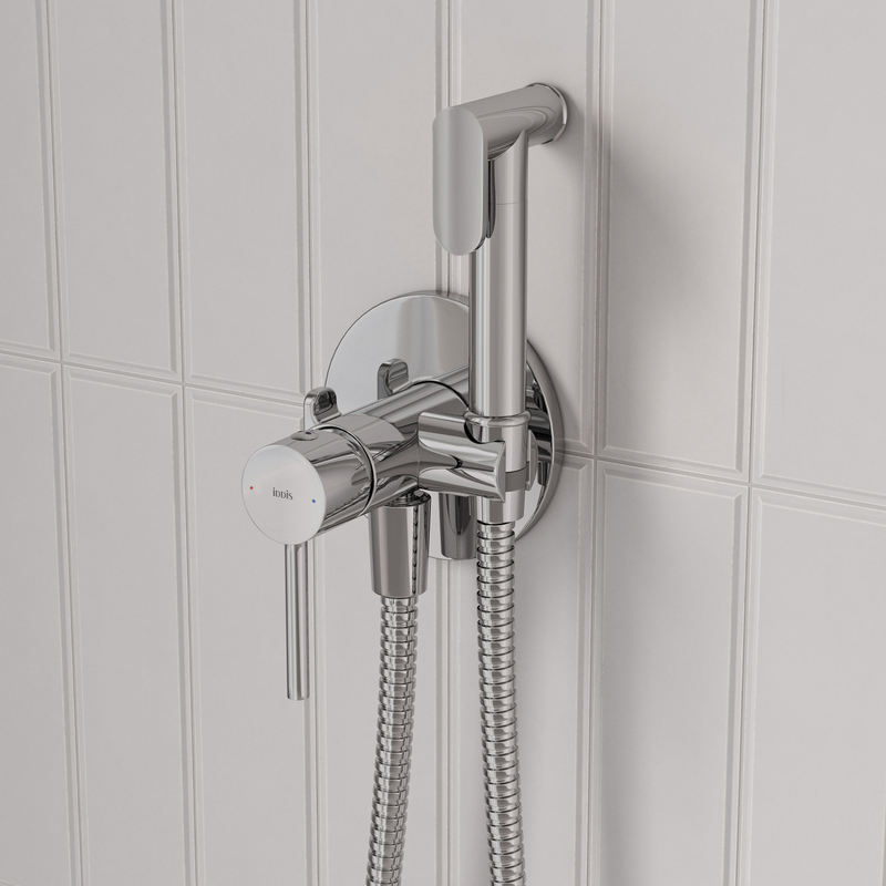 Встраиваемый смеситель с гигиеническим душем Axes в универсальном хроме – практичный и стильный, его дизайн сочетает в себе трендовый минимализм форм и округлые формы. Имеет крючок для полотенца, который можно установить как слева, так и справа, меняя местами с держателем для лейки. Душевой шланг с защитой от перекручивания в комплекте (длина 1,2 м). • Гигиеническая лейка очень компактная, но при этом она комфортно и уверенно ощущается в любой руке – благодаря тому, что изготовлена из увесистой латуни. Устойчива к коррозии, переносит перепады давления и температуры воды. Универсальна: можно использовать не только для личной гигиены, но и в качестве гидроерша для мытья унитаза. • Пластиковая проставка в держателе лейки защищает поверхность гайки шланга от царапин и крепко держит его в держателе. • Экономит пространство и упрощает уборку — благодаря скрытому монтажу в стену (на глубину 41–53 мм) и отсутствию больших выступающих элементов конструкции. Подключается с помощью любых труб, диаметр входных отверстий ½ дюйма. • Смеситель прослужит долго благодаря надёжному корпусу из прочной латуни, стойкому к коррозии, резким изменениям давления и перепадам температуры воды. • Плавный ход ручки и абсолютная точность регулировки температуры и напора воды — за счёт качественного керамического картриджа IDDIS®. Гарантия на смесители IDDIS® – 10 лет, на лейку и шланг – 3 года. (с) Авторский текст, январь 2026 г.