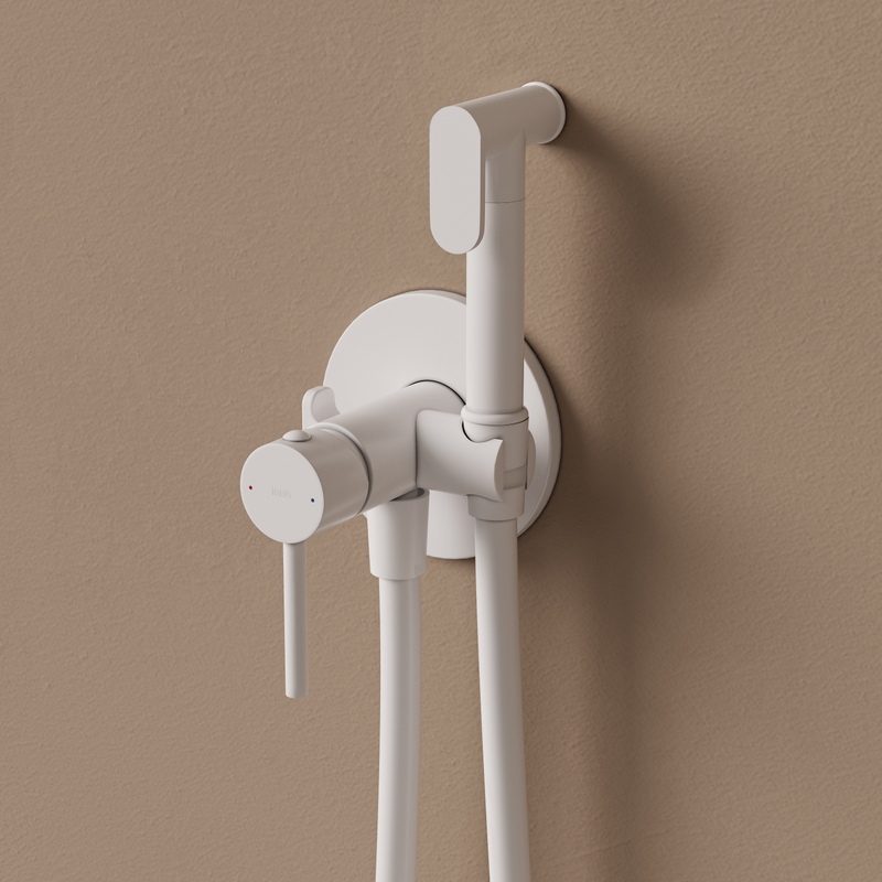 Встраиваемый смеситель с гигиеническим душем Axes в стильном матовом белом цвете – практичный и стильный, его дизайн сочетает в себе трендовый минимализм форм и округлые формы. Имеет крючок для полотенца, который можно установить как слева, так и справа, меняя местами с держателем для лейки. Душевой шланг с защитой от перекручивания в комплекте (длина 1,2 м). • Гигиеническая лейка очень компактная, но при этом она комфортно и уверенно ощущается в любой руке – благодаря тому, что изготовлена из увесистой латуни. Устойчива к коррозии, переносит перепады давления и температуры воды. Универсальна: можно использовать не только для личной гигиены, но и в качестве гидроерша для мытья унитаза. • Пластиковая проставка в держателе лейки защищает поверхность гайки шланга от царапин и крепко держит его в держателе. • Экономит пространство и упрощает уборку — благодаря скрытому монтажу в стену (на глубину 41–53 мм) и отсутствию больших выступающих элементов конструкции. Подключается с помощью любых труб, диаметр входных отверстий ½ дюйма. • Смеситель прослужит долго благодаря надёжному корпусу из прочной латуни, стойкому к коррозии, резким изменениям давления и перепадам температуры воды. • Плавный ход ручки и абсолютная точность регулировки температуры и напора воды — за счёт качественного керамического картриджа IDDIS®. Гарантия на смесители IDDIS® – 10 лет, на лейку и шланг – 3 года. (с) Авторский текст, январь 2026 г.