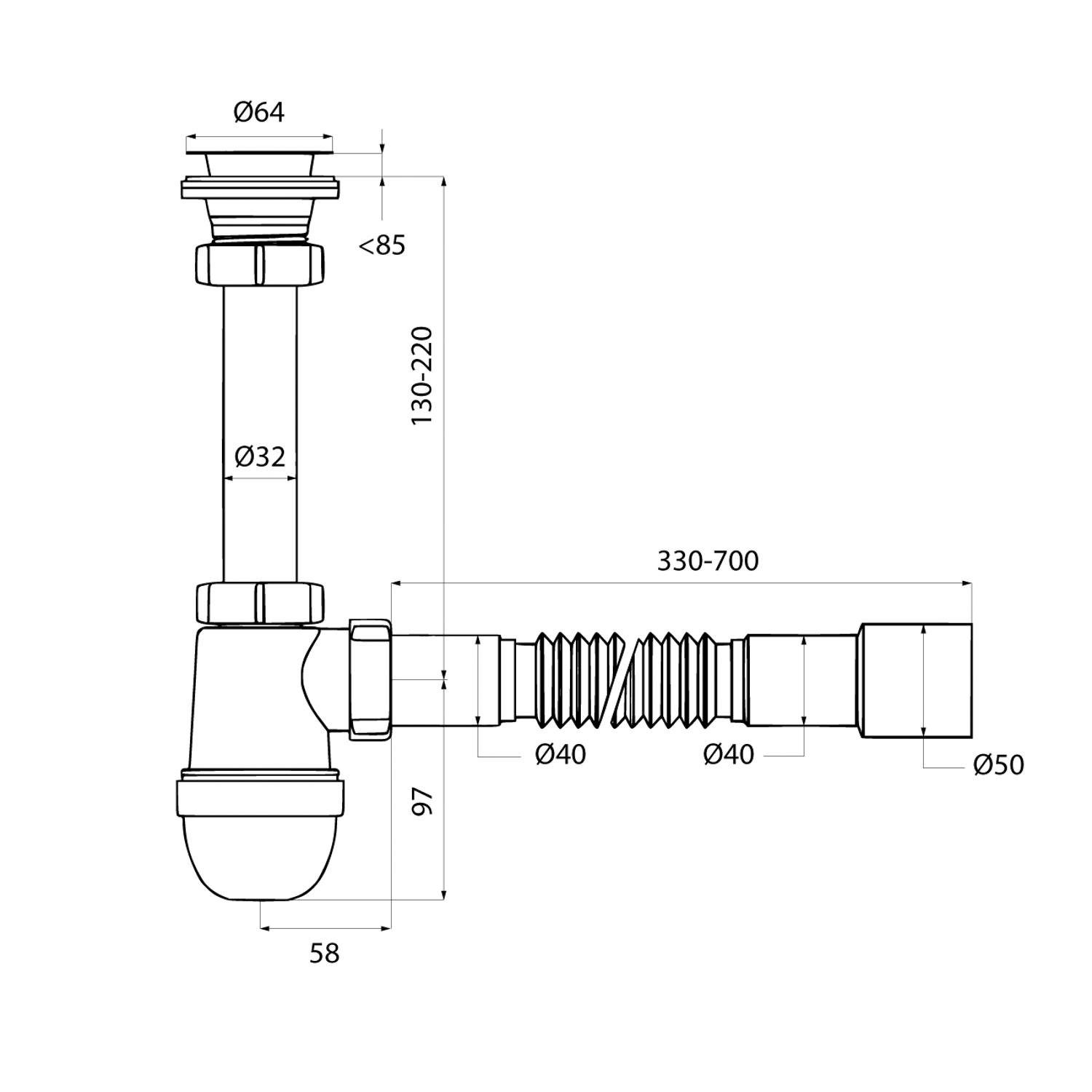 | Диаметр выхода для подключения к канализации, мм (Сифоны): | 40/50 |