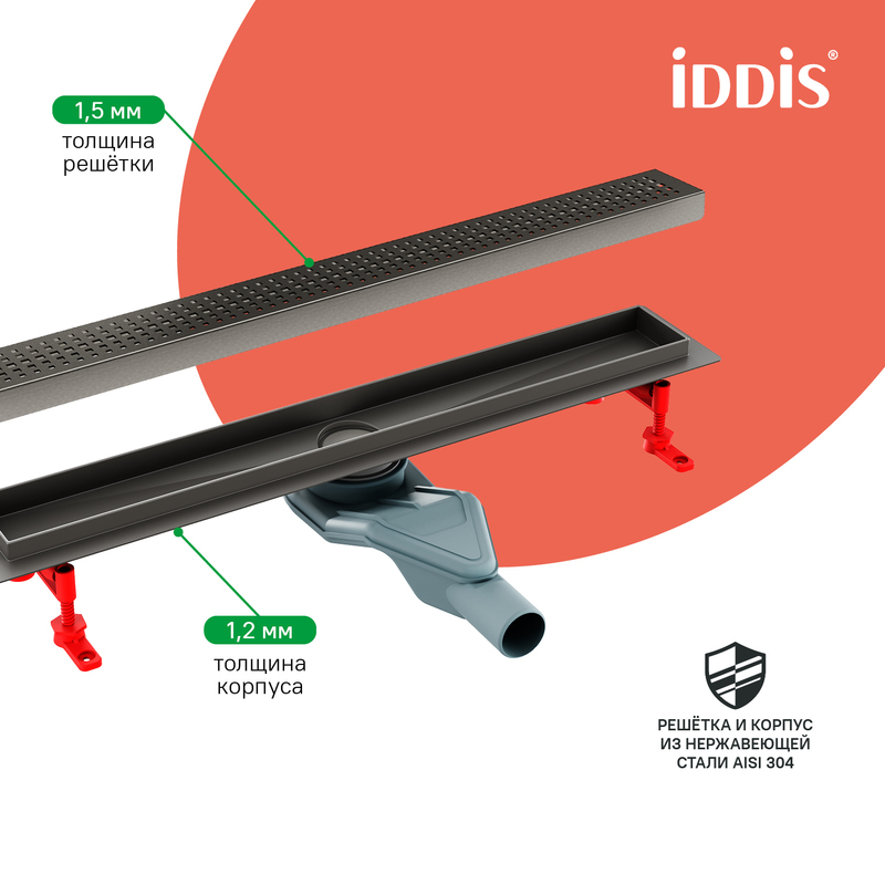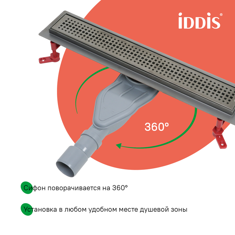 Душевой лоток IDDIS® в цвете графит с горизонтальным выпуском и сифоном 360° предназначен для отведения воды в канализацию из зоны принятия душа. Он заменит традиционные поддоны с бортиками, предлагая универсальный дизайн решетки и возможности для создания стильного интерьера ванной комнаты. Длина решетки — 600 мм; подходит для плитки толщиной до 12 мм. • Благодаря поворотному механизму сифона, его можно установить в удобном месте, независимо от того, где находится подключение к канализации. • Высокая пропускная способность — 42 л/мин. • Легко очищается: удобно разобрать и промыть. • Оснащен сухим затвором, защищающим от неприятного запаха даже после испарения воды в сифоне. • Изготовлен из толстой высококачественной нержавеющей стали AISI 304, обеспечивающей долговечность, надежность и безопасность. • Регулируемые опоры позволяют адаптировать лоток по высоте. • В комплекте все необходимое для монтажа: гидрополотно с вырезом под размеры лотка, переходник 40/50, фильтр для волос и крючок для извлечения сетки. Покрытие устойчиво к коррозии, появлению царапин, сколов и потускнению. На протяжении многих лет он будет выглядеть как новый. Гарантия на душевые лотки IDDIS® – 10 лет. (с) Авторский текст, март 2025 г.
