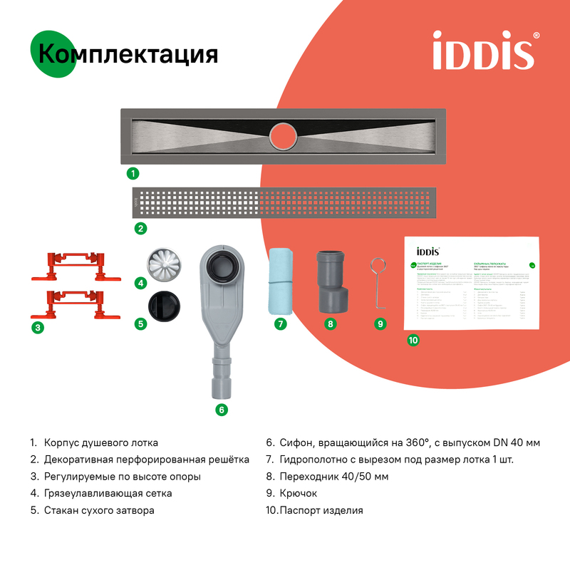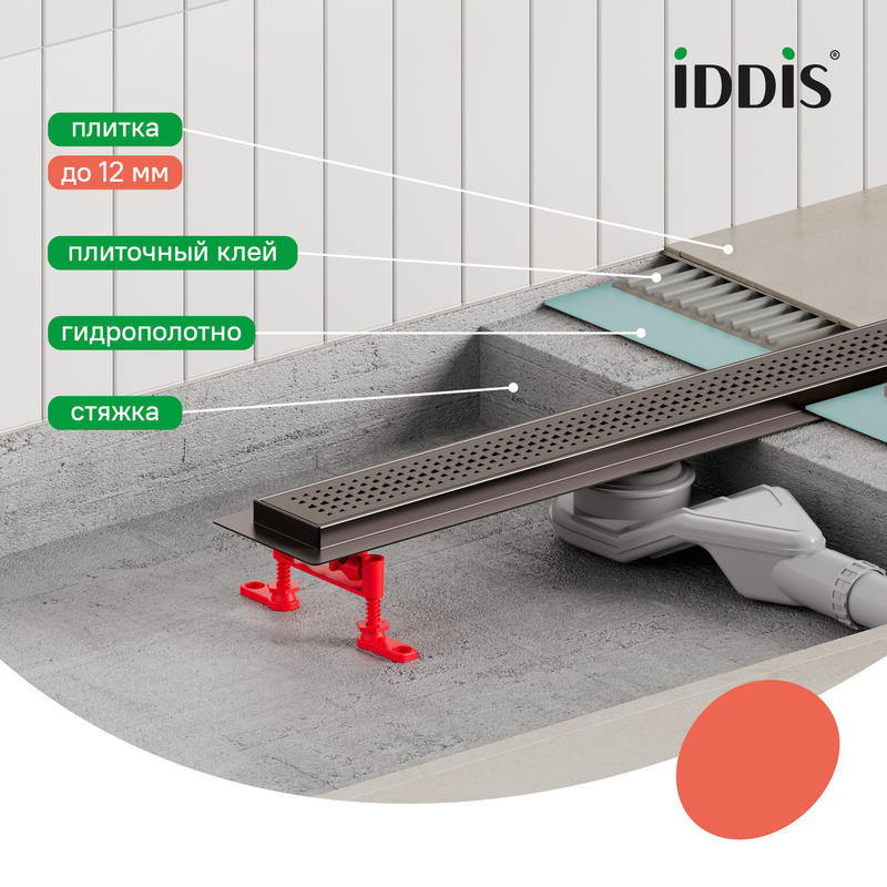 Душевой лоток IDDIS® в цвете графит с горизонтальным выпуском и сифоном 360° предназначен для отведения воды в канализацию из зоны принятия душа. Он заменит традиционные поддоны с бортиками, предлагая универсальный дизайн решетки и возможности для создания стильного интерьера ванной комнаты. Длина решетки — 800 мм; подходит для плитки толщиной до 12 мм. • Благодаря поворотному механизму сифона, его можно установить в удобном месте, независимо от того, где находится подключение к канализации. • Высокая пропускная способность — 42 л/мин. • Легко очищается: удобно разобрать и промыть. • Оснащен сухим затвором, защищающим от неприятного запаха даже после испарения воды в сифоне. • Изготовлен из толстой высококачественной нержавеющей стали AISI 304, обеспечивающей долговечность, надежность и безопасность. • Регулируемые опоры позволяют адаптировать лоток по высоте. • В комплекте все необходимое для монтажа: гидрополотно с вырезом под размеры лотка, переходник 40/50, фильтр для волос и крючок для извлечения сетки. Покрытие устойчиво к коррозии, появлению царапин, сколов и потускнению. На протяжении многих лет он будет выглядеть как новый. Гарантия на душевые лотки IDDIS® – 10 лет. (с) Авторский текст, март 2025 г.