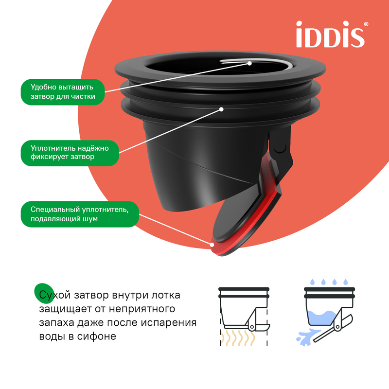 | Вид затвора (Лоток душевой): | Комбинированный затвор (мокрый + сухой) |