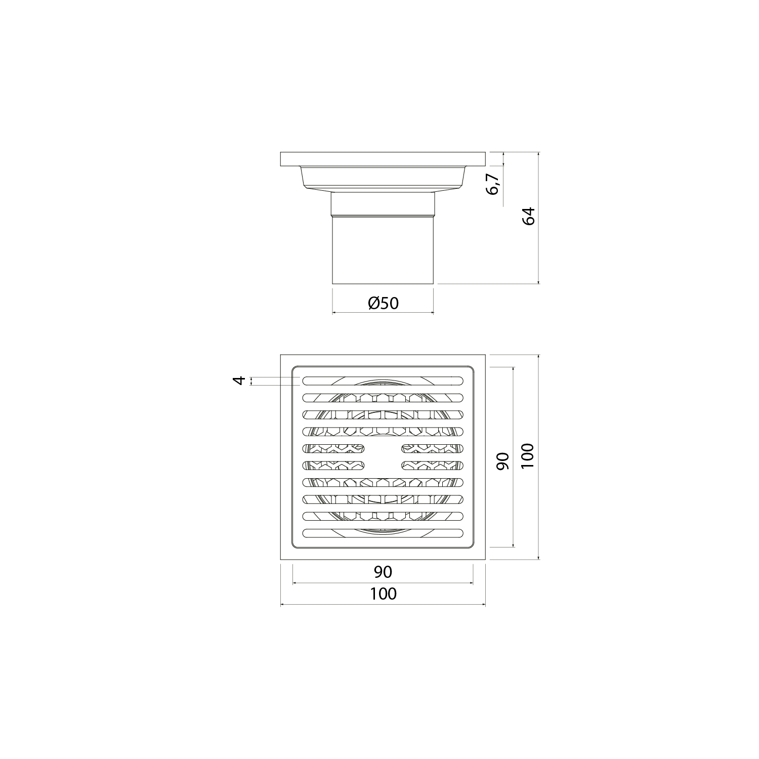 | Размеры решетки, мм (Трап душевой): | 100*100 |