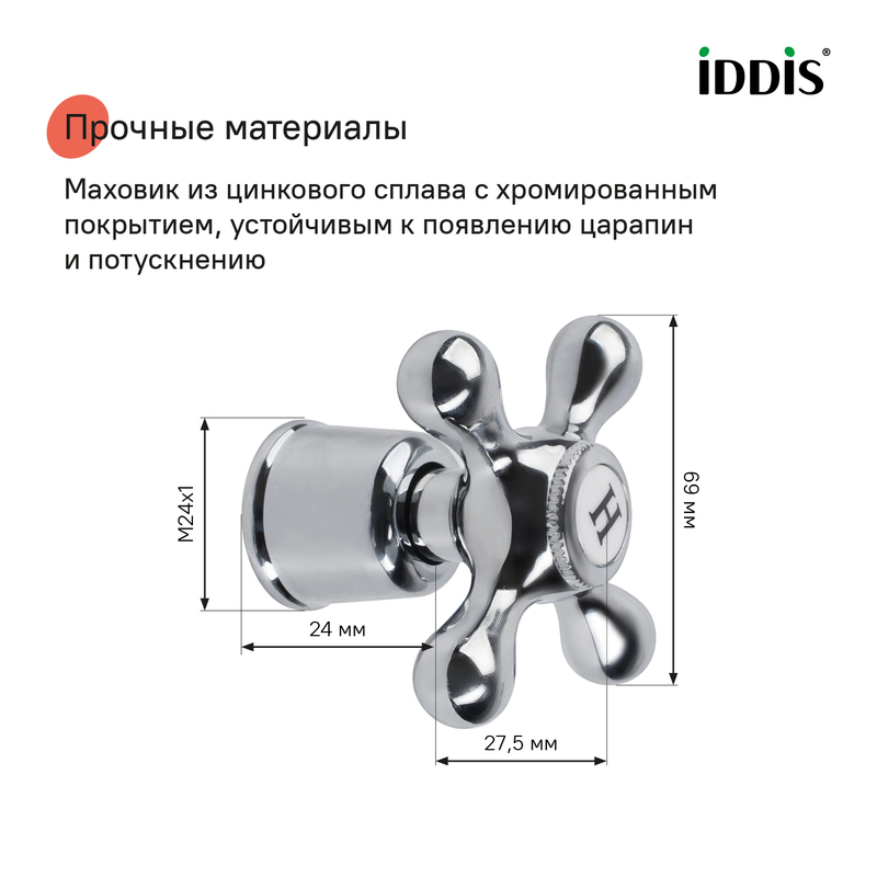Керамическая кран-букса с универсальной сменной ручкой крестообразной формы в комплекте. Готовое решение для замены элементов управления в двухзахватном смесителе. • В самом популярном размере – G1/2”. • Увеличенный угол поворота на 180° обеспечивает точнейшую настройку температуры и напора воды. • Максимальная температура: 90°. • Гарантированная работа кран-буксы – более 300 000 циклов открытий-закрытий. • Маховик изготовлен из прочного цинкового сплава с хромированным покрытием, устойчивым к появлению царапин и потускнению (при должном уходе). • Прочный латунный корпус кран-буксы устойчив к коррозии, гидроударам и перепадам температур. Комплект совместим не только со смесителями IDDIS®, но и с большинством моделей других производителей. Гарантия на аксессуары к смесителям IDDIS® – 3 года. (с) Авторский текст, сентябрь 2025 г.