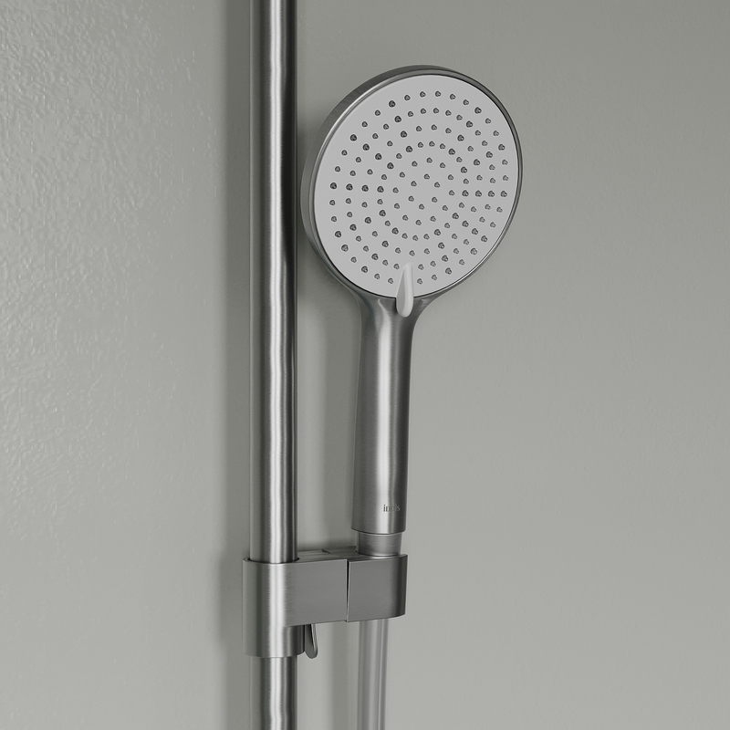 Стильная функциональная душевая система Aiger, где удачно сочетается актуальный современный дизайн и трендовый оттенок матового хрома с брашированным покрытием. Тонкая удлиненная ручка добавляет смесителю изящества и комфорт в управлении. • Штанга верхнего душа с регулируемой высотой 860-1360 мм позволяет с комфортом принимать душ всей семье. • Поток воды переключается поворотным керамическим дивертором на стойке – он повторяет дизайн ручки, выглядит стильно и элегантно. • Излив удлиненной формы в общем стиле смесителя, можно повернуть параллельно стене. Скрытый силиконовый аэратор добавляет эстетики и легко чистится от загрязнений. • Керамический картридж Citec® (Испания) обеспечивает точную и удобную регулировку температуры и напора воды за счет особенно плавного хода ручки смесителя. Ресурс – 175 000 циклов (более 15 лет эксплуатации семьей из 3 человек), что в 2 раза больше европейского стандарта EN817. • В комплекте гибкий шланг из ПВХ 1,5 м, верхняя (d=228 мм) и ручная (3 режима, d=116 мм) лейки. • Покрытие устойчиво к коррозии, появлению царапин, сколов и потускнению. На протяжении многих лет будет выглядеть как новое. Гарантия на смесители IDDIS® – 10 лет, на душевые аксессуары – 3 года. (с) Авторский текст, ноябрь 2023 г.