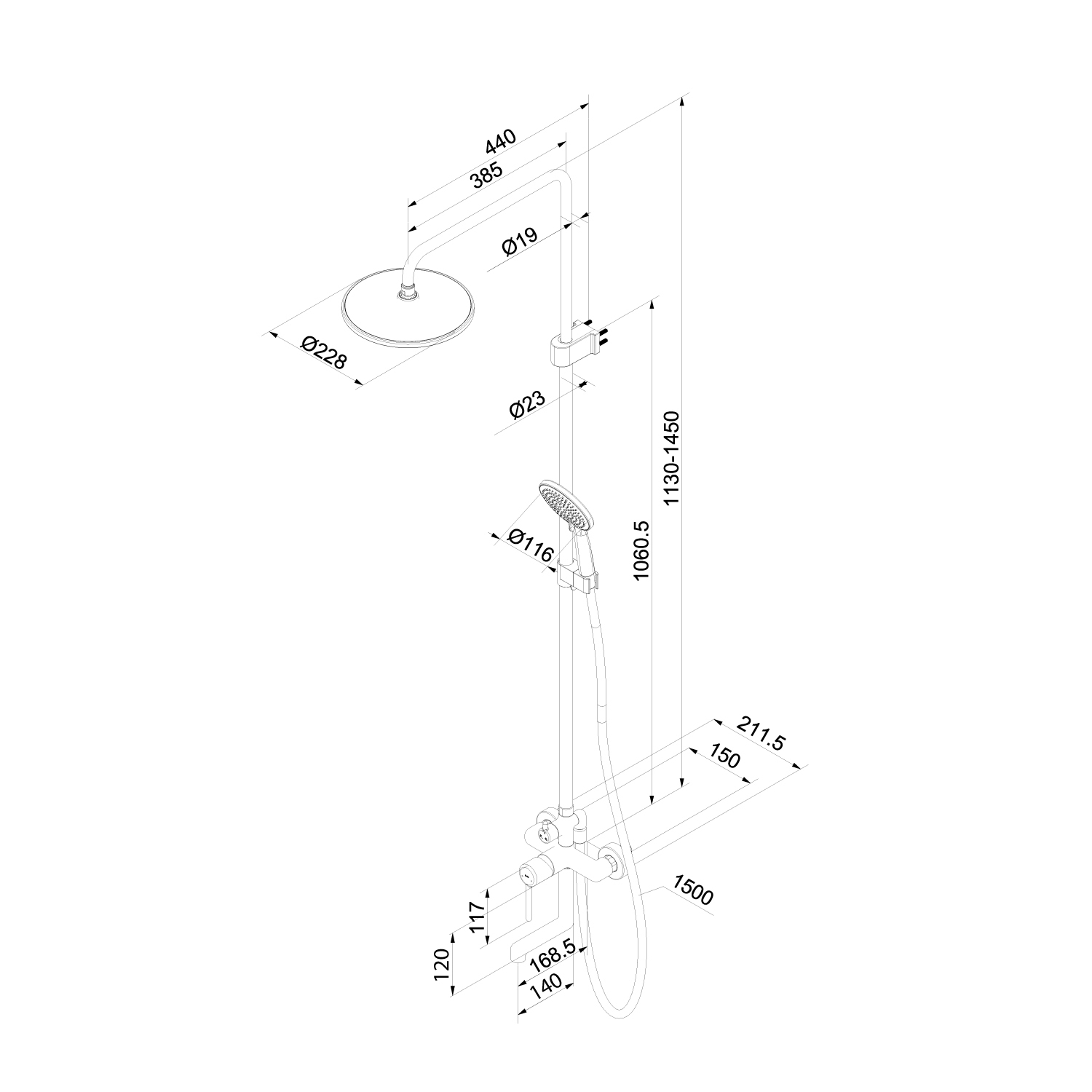 Стильная функциональная душевая система Эйгер (Aiger), где удачно сочетается актуальный современный дизайн и красивый матовый белый цвет. Тонкая удлинённая ручка добавляет смесителю изящества и комфорт в управлении. • Керамический картридж обеспечивает точную регулировку температуры и напора воды за счёт особенно плавного хода ручки смесителя. • Штанга верхнего душа регулируется по высоте 113-145 см в момент установки смесителя, что позволяет в дальнейшем с комфортом принимать душ всей семье. • Поток воды переключается поворотным керамическим дивертором на стойке – он повторяет дизайн ручки, выглядит стильно и элегантно. • Излив удлинённой формы в общем стиле смесителя, можно повернуть параллельно стене. Скрытый силиконовый аэратор добавляет эстетики и легко чистится от извести и загрязнений. • В комплекте гибкий шланг из ПВХ 1,5 м, верхняя (d=228 мм) и ручная (3 режима, d=116 мм) лейки. • Цветное покрытие устойчиво к появлению царапин и выцветанию. На протяжении многих лет будет выглядеть как новое. Гарантия на смесители IDDIS® – 10 лет, на душевые аксессуары – 3 года. (с) Авторский текст, март 2026 г.