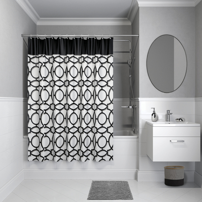 Непрозрачная штора с красивым монохромным принтом в стиле ардеко в духе интерьеров эпохи Гэтсби. Штора изготовлена из полиэстера с красивой атласной текстурой и деликатным блеском. Штора имеет утяжеляющую нить по нижнему краю, которая позволяет избежать задирания ткани, хромированные металлические люверсы, кольца в форме буквы О из прозрачного пластика.