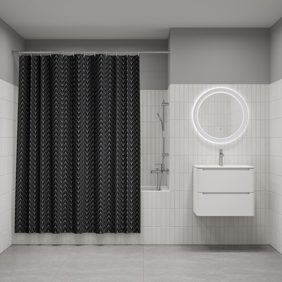 Текстильная штора для ванной черного цвета с белым геометричным принтом. • Изготовлена из износостойкого полиэстера с усиленной водонепроницаемой пропиткой. При попадании на ткань вода не впитывается, а скатывается каплями, даже при сильном напоре воды. • В комплекте 12 колец С-формы из прозрачного пластика. • По верхнему краю расположены 12 прозрачных пластиковых люверсов. • Штора имеет утяжеляющую нить по нижнему краю, которая позволяет избежать задирания ткани. • Легко ухаживать: шторку для ванной комнаты можно стирать в стиральной машине в деликатном режиме и гладить утюгом на минимальной температуре. Гарантия на текстильные аксессуары IDDIS® – 1 год. (с) Авторский текст, август 2023 г.