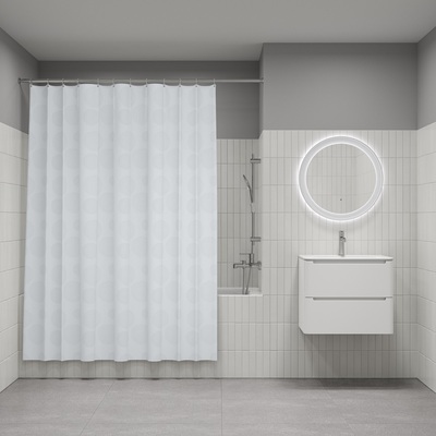 Текстильная штора для ванной белого цвета с деликатным рисунком в виде кругов выглядит элегантно и подойдет к интерьеру в любом стиле и цветовой гамме. • Изготовлена из износостойкого полиэстера с водоотталкивающей пропиткой. При попадании на ткань вода не впитывается, а скатывается каплями, даже при сильном напоре воды. • В комплекте 12 колец С-формы из прозрачного пластика. • По верхнему краю расположены 12 прозрачных пластиковых люверсов. • Штора имеет утяжеляющую нить по нижнему краю, которая позволяет избежать задирания ткани. • Легко ухаживать: шторку для ванной комнаты можно стирать в стиральной машине в деликатном режиме и гладить утюгом на минимальной температуре. Гарантия на текстильные аксессуары IDDIS® – 1 год. (с) Авторский текст, сентябрь 2023 г.