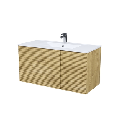Вместительная подвесная тумба для ванной комнаты Bild с умывальником, ящиками и полками – красивый дизайн со структурной горизонтальной фрезеровкой в сочетании с теплым оттенком дуба, удобством и практичностью. Материал фасада – МДФ с покрытием ПВХ-пленкой. Она разработана для использования в помещениях с высокой влажностью и сохранит первоначальный вид мебели надолго (при должном уходе). Материал боковин – ЛДСП. Керамический умывальник с высоким бортом и большой вместительной чашей в комплекте. Удобен для гигиенических и хозяйственных нужд. Два ящика с направляющими скрытого монтажа с доводчиком Hettich и полки с распашной дверкой. Фурнитура рассчитана на 30 000 открываний – это более 10 лет исправной работы. Современный механизм открытия Push-to-Open – открывается нажатием на фасад. В комплекте крепеж для монтажа тумбы. Сифон приобретается отдельно. Гарантия на мебель IDDIS® – 3 года, на умывальник – 5 лет. (с) Авторский текст, март 2025 г.