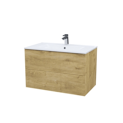 Вместительная подвесная тумба для ванной комнаты Bild с умывальником и ящиками – красивый дизайн со структурной горизонтальной фрезеровкой в сочетании с теплым оттенком дуба, удобством и практичностью. - Материал фасада – МДФ с покрытием ПВХ-пленкой. Она разработана для использования в помещениях с высокой влажностью и сохранит первоначальный вид мебели надолго (при должном уходе). Материал боковин – ЛДСП. - Керамический умывальник с высоким бортом и большой вместительной чашей в комплекте. Удобен для гигиенических и хозяйственных нужд. - Два ящика с направляющими скрытого монтажа Hettich. Фурнитура рассчитана на более 10 лет исправной работы. - Современный механизм открытия Push-to-Open – открывается нажатием на фасад. - В комплекте крепеж для монтажа тумбы. - Сифон приобретается отдельно. Гарантия на мебель IDDIS® – 3 года, на умывальник – 5 лет. (с) Авторский текст, июнь 2024 г.