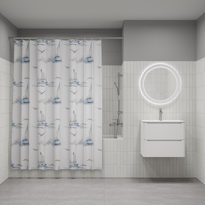 Текстильная штора для ванной белого цвета с акварельным принтом в виде чаек и яхт на морских волнах. Штора освежит пространство и привнесет в него легкое настроение. • Изготовлена из износостойкого полиэстера с водоотталкивающей пропиткой. При попадании на ткань вода не впитывается, а скатывается каплями, даже при сильном напоре воды. • В комплекте 12 колец С-формы из прозрачного пластика. • По верхнему краю расположены 12 прозрачных пластиковых люверсов. • Штора имеет утяжеляющую нить по нижнему краю, которая позволяет избежать задирания ткани. • Легко ухаживать: шторку для ванной комнаты можно стирать в стиральной машине в деликатном режиме и гладить утюгом на минимальной температуре. Гарантия на текстильные аксессуары IDDIS® – 1 год. (с) Авторский текст, сентябрь 2023 г.