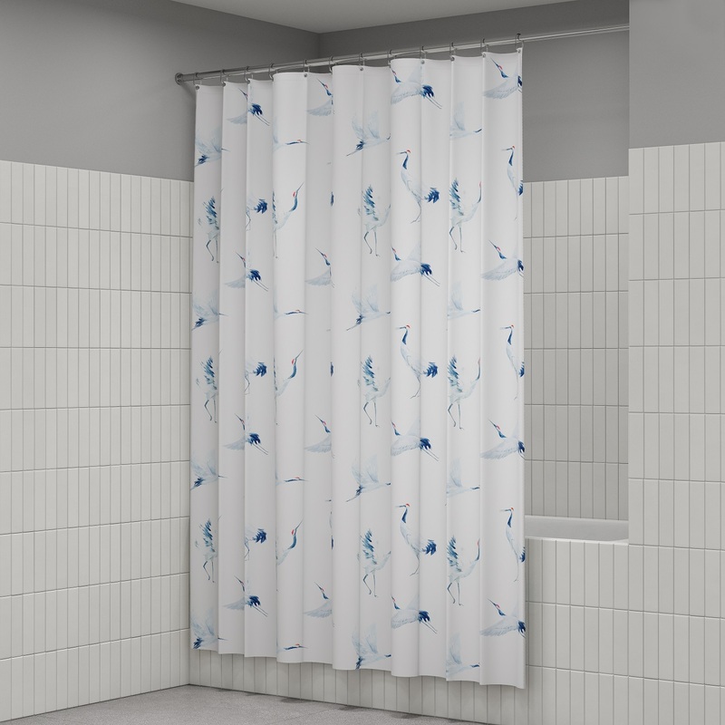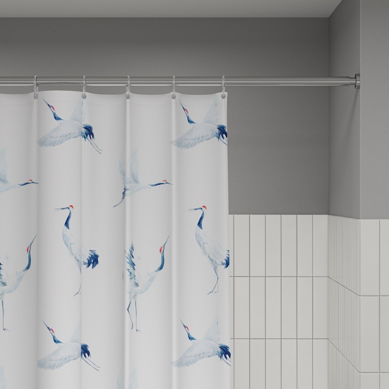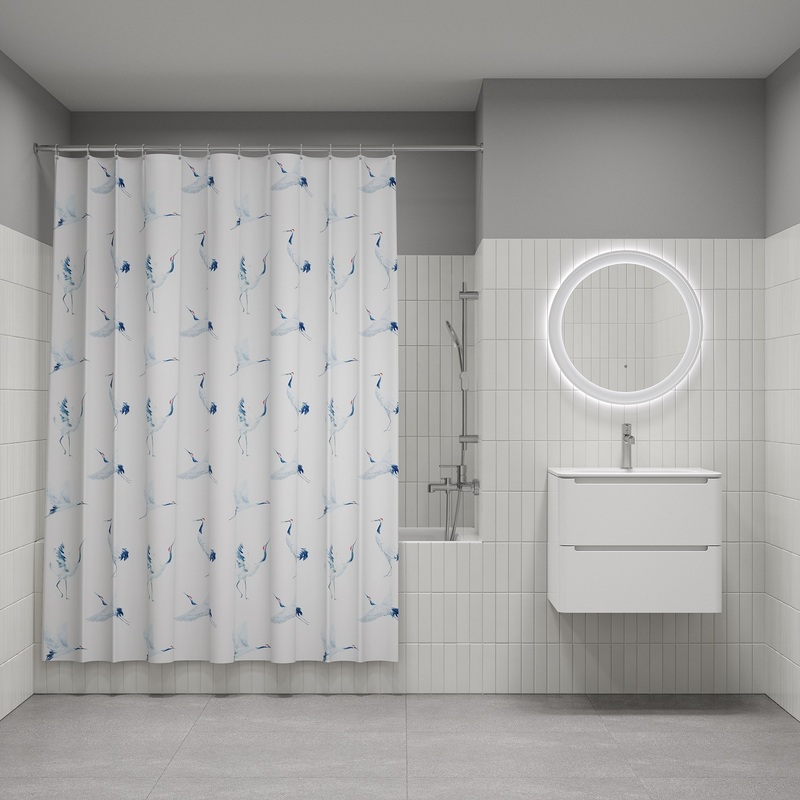 Текстильная штора для ванной белого цвета с изящными акварельными журавлями освежит любую ванную комнату. • Изготовлена из износостойкого полиэстера с водоотталкивающей пропиткой. При попадании на ткань вода не впитывается, а скатывается каплями, даже при сильном напоре воды. • В комплекте 12 колец С-формы из прозрачного пластика. • По верхнему краю расположены 12 прозрачных пластиковых люверсов. • Штора имеет утяжеляющую нить по нижнему краю, которая позволяет избежать задирания ткани. • Легко ухаживать: шторку для ванной комнаты можно стирать в стиральной машине в деликатном режиме и гладить утюгом на минимальной температуре. Гарантия на текстильные аксессуары IDDIS® – 1 год. (с) Авторский текст, сентябрь 2023 г.