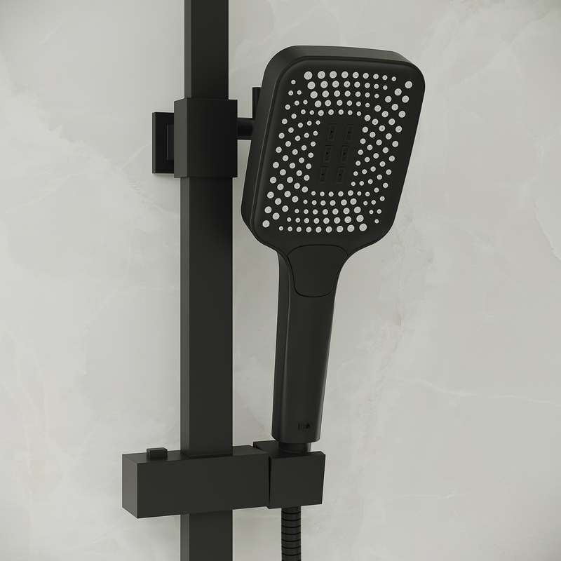 Практичная и стильная душевая система Brent в трендовом черном цвете с тропическим душем и изливом. Четкие формы и грани красиво дополнят интерьер ванной комнаты в любом стиле. • Регулируемая высота стойки до 143 см. • Поворотный излив – можно сложить под корпус смесителя, освободив место. Комфортное расстояние от стены до центра аэратора – 18,4 см. • Интегрированный дивертор в изливе – поворот излива переключает поток воды на ручную лейку. Переключение на тропический душ – поворотным дивертором. • Большая верхняя лейка 20х30 см на достаточном расстоянии от стены – можно комфортно принимать душ и свободно двигаться. Благодаря шарнирному креплению наклон регулируется в любом направлении. • Ручная лейка с 3 режимами (меняются нажатием кнопки). Поворотный держатель позволяет настроить удобный угол наклона, высота держателя регулируется при зажатой кнопке. • Цветное покрытие устойчиво к появлению царапин и выцветанию. На протяжении многих лет оно будет выглядеть как новое. Гарантия на смесители IDDIS® – 10 лет, на душевые аксессуары – 3 года. (с) Авторский текст, октябрь 2024 г.