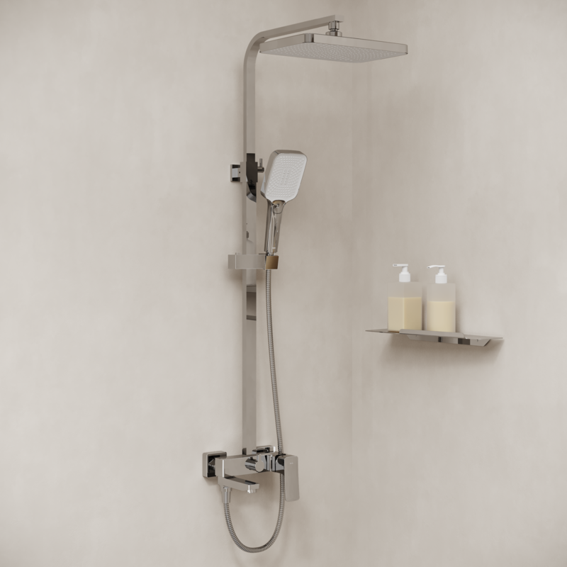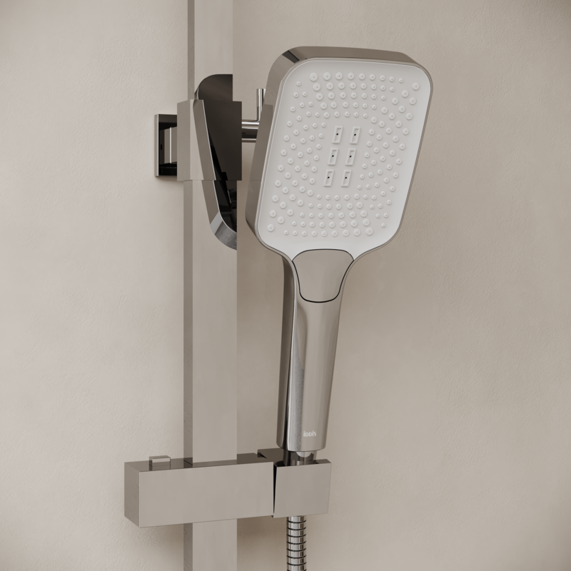 Практичная и стильная душевая система Brent в хроме с тропическим душем и изливом. Четкие формы и грани красиво дополнят интерьер ванной комнаты в любом стиле. • Регулируемая высота стойки до 143 см. • Поворотный излив – можно сложить под корпус смесителя, освободив место. Комфортное расстояние от стены до центра аэратора – 18,4 см. • Интегрированный дивертор в изливе – поворот излива переключает поток воды на ручную лейку. Переключение на тропический душ – поворотным дивертором. • Большая верхняя лейка 20х30 см на достаточном расстоянии от стены – можно комфортно принимать душ и свободно двигаться. Благодаря шарнирному креплению наклон регулируется в любом направлении. • Ручная лейка с 3 режимами (меняются нажатием кнопки). Поворотный держатель позволяет настроить удобный угол наклона, высота держателя регулируется при зажатой кнопке. • Хромированное покрытие устойчиво к коррозии, появлению царапин, сколов и потускнению. На протяжении многих лет будет выглядеть как новое. Гарантия на смесители IDDIS® – 10 лет, на душевые аксессуары – 3 года. (с) Авторский текст, октябрь 2024 г.