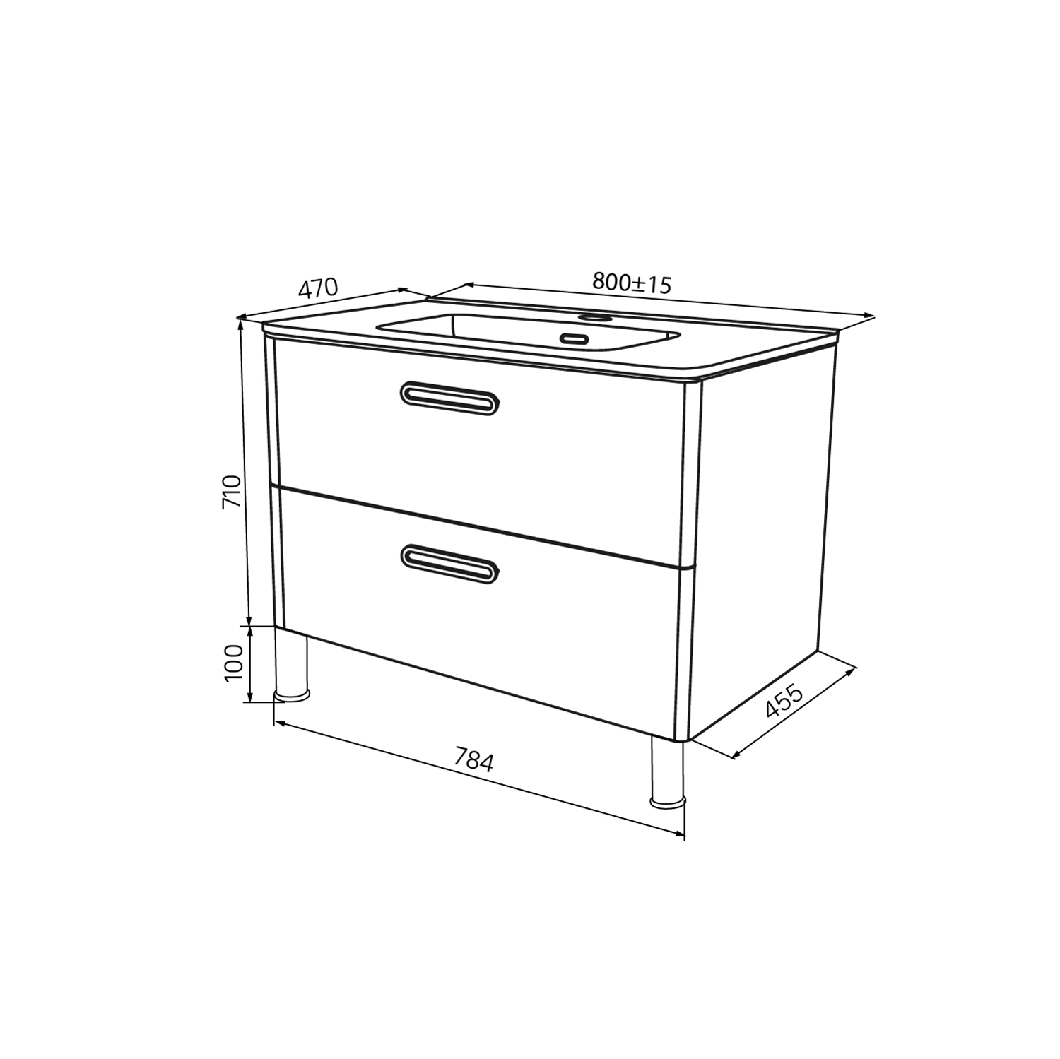 3. 959BR80UMB-1 | Фасад ящика (верхний), тумба напольная, 80 см, 2 отв. сбоку, 3 снизу, белая, Brick | |