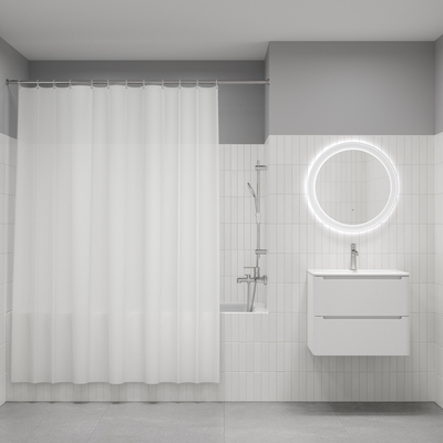 Текстильная белая штора для ванной будет гармонично смотреться и в светлом, и в темном интерьере. • Изготовлена из износостойкого полиэстера с водоотталкивающей пропиткой. При попадании на ткань вода не впитывается, а скатывается каплями, даже при сильном напоре воды. • В комплекте 12 колец С-формы из прозрачного пластика. • По верхнему краю расположены 12 прозрачных пластиковых люверсов. • Штора имеет утяжеляющую нить по нижнему краю, которая позволяет избежать задирания ткани. • Легко ухаживать: шторку для ванной комнаты можно стирать в стиральной машине в деликатном режиме и гладить утюгом на минимальной температуре. Гарантия на текстильные аксессуары IDDIS® – 1 год. (с) Авторский текст, декабрь 2025 г.
