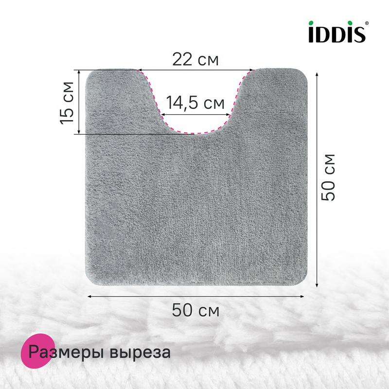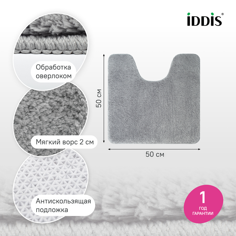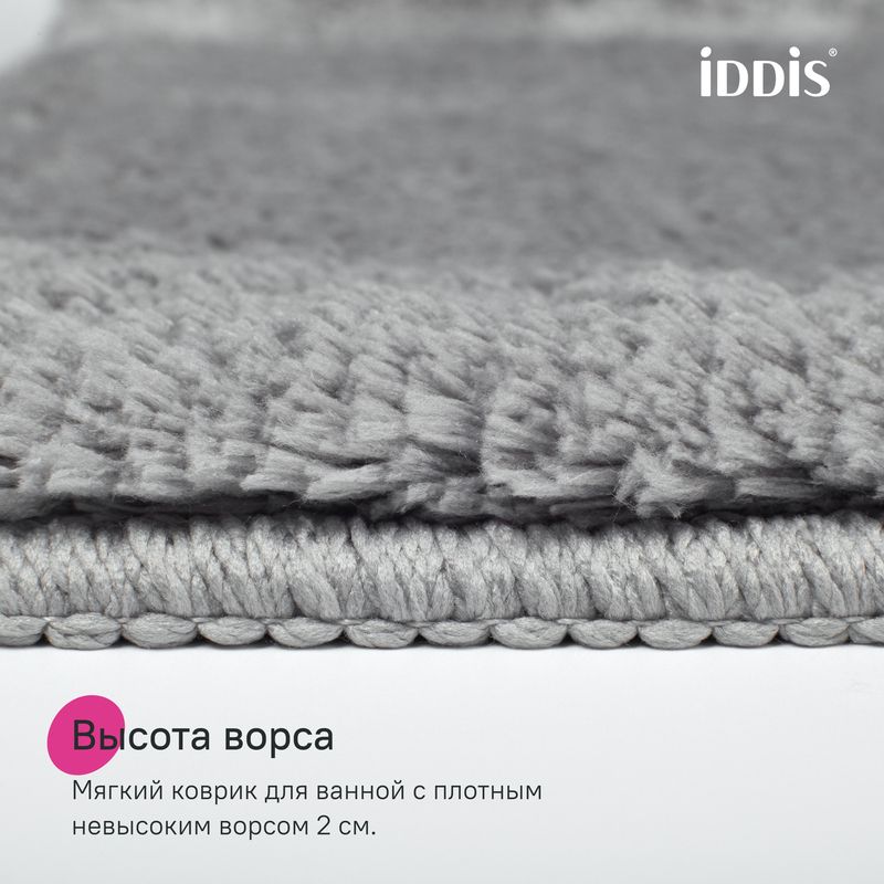 Мягкий коврик для ванной стильного серого цвета с плотным высоким ворсом (2 см), очень приятный на ощупь. Стриженый ворс из микрофибры отлично держит форму, легко чистится и быстро сохнет. Коврик имеет вырез под унитаз и предназначен для туалета. • Коврик противоскользящий: основа из экологичной термопластичной резины (TPR) позволяет не скользить на гладком и влажном кафеле. Подходит для использования в помещениях с теплыми полами. • Благодаря современным влагостойким материалам и качественной обработке краев коврик не потеряет яркости красок, не обветшает и надолго останется привлекательными как в день покупки. • Несложно ухаживать: разрешена деликатная стирка при температуре до 40 градусов с жидким моющим средством; не сушить на батарее, избегать солнечных лучей. Гарантия на текстильные аксессуары IDDIS® – 1 год. (с) Авторский текст, август 2025 г.