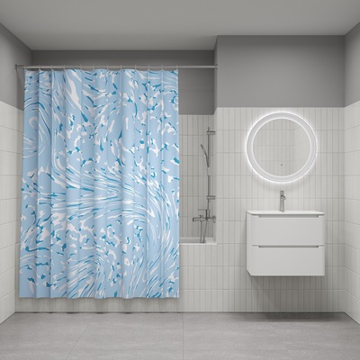 Текстильная штора с абстрактным рисунком в голубых тонах разнообразит простой интерьер и привнесет в него настроение. • Изготовлена из износостойкого полиэстера с водоотталкивающей пропиткой. При попадании на ткань вода не впитывается, а скатывается каплями, даже при сильном напоре воды. • В комплекте 12 колец С-формы из прозрачного пластика. • По верхнему краю расположены 12 прозрачных пластиковых люверсов. • Штора имеет утяжеляющую нить по нижнему краю, которая позволяет избежать задирания ткани. • Легко ухаживать: шторку для ванной комнаты можно стирать в стиральной машине в деликатном режиме и гладить утюгом на минимальной температуре. Гарантия на текстильные аксессуары IDDIS® – 1 год. (с) Авторский текст, сентябрь 2023 г.
