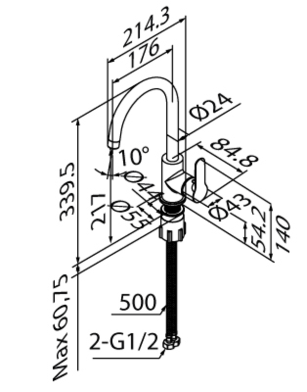 Подключение к системе водоснабжения: | Гибкая подводка из нетоксичной EPDM резины в оплетке из нержавеющей стали, М10 - 1/2, длина 550 мм |