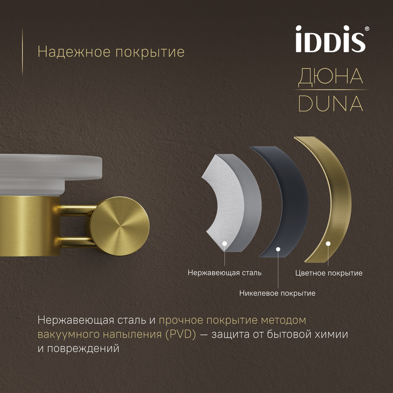 Мыльница из коллекции Art выполнена из матового стекла в элегантном глянцевом золоте с черной насечкой. Этот стильный аксессуар добавит утонченности в интерьер и обеспечит безопасность: поверхность не царапает и не оставляет зацепок на тканях. Изготовлен из нержавеющей стали с инновационным покрытием PVD, которое защищает покрытие от коррозии и долго служит. В комплекте шурупы для простой и быстрой установки. Обратите внимание на все аксессуары из коллекции Art – они идеально дополняют друг друга, с их помощью легко оформить пространство в едином стиле. Гарантия на аксессуары IDDIS® – 5 лет, чтобы вы были уверены в их надежности и высоком качестве. (с) Авторский текст, ноябрь 2024 г.