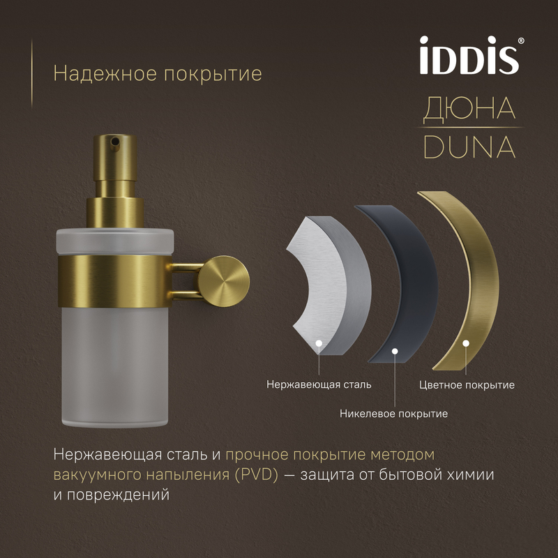 Дозатор для жидкого для мыла из коллекции Art в глянцевом золоте – стильное и практичное решение для ванной комнаты. Современный дизайн с высококачественной насечкой обеспечивает безопасность: поверхность не царапает и не оставляет зацепок на тканях. Изготовлен из нержавеющей стали с инновационным покрытием PVD, которое защищает покрытие от коррозии и долго служит. В комплекте шурупы для простой и быстрой установки. Обратите внимание на все аксессуары из коллекции Art – они идеально дополняют друг друга, с их помощью легко оформить пространство в едином стиле. Гарантия на аксессуары IDDIS® – 5 лет, чтобы вы были уверены в их надежности и высоком качестве. (с) Авторский текст, ноябрь 2024 г.