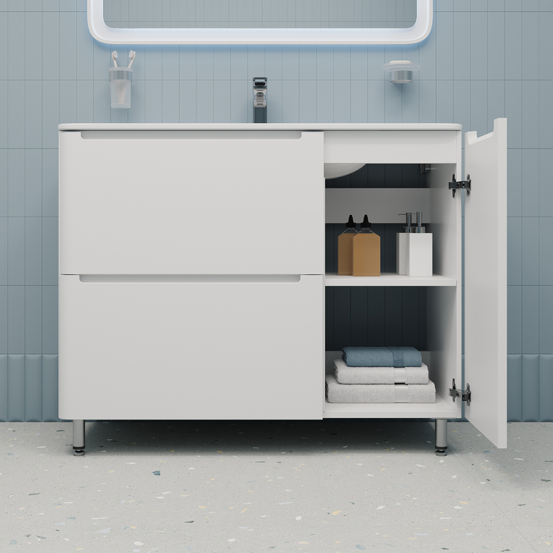 | Уникальные преимущества: | Интегрированные ручки, плоский умывальник, ящики с механизмом плавного доведения |