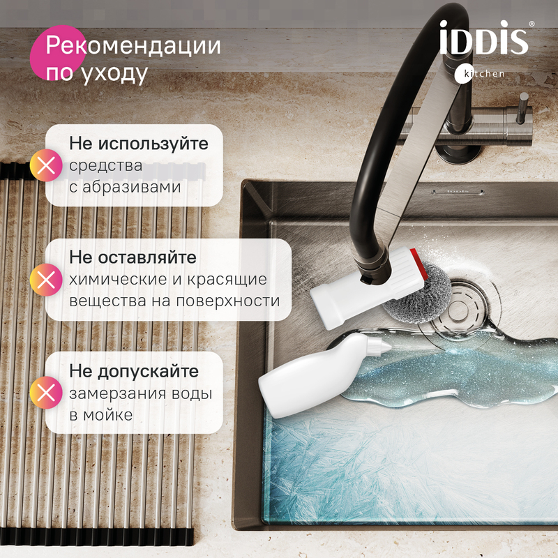 Сатиновая мойка Edifice перевернет представление о привычных мойках благодаря современному дизайну и эргономичности, достойных кухни шеф-повара. Для шкафа от 50 см. Глубина 20 см. Произведена ручным способом для сохранения толщины стального листа. Идеальная геометрия с малым скруглением углов увеличивает рабочее пространство: удобно мыть много посуды и крупные предметы. • В комплекте все необходимое: 2 набора крепежей, стильный выпуск, плоский сифон, который занимает меньше места и освобождает полезное пространство. Универсальный монтаж: врезной (вырез под мойку составляет 420х420хR10 мм) и подстольный (вырез под мойку составляет 400х400 мм). • Мойка толщиной 1 мм выполнена из качественной нержавеющей стали AISI 304; сталь содержит 18% хрома и 8% никеля, что надежно защищает ее от коррозии. Стойкая к износу, выдерживает различные t, легко моется, долго служит. При правильном уходе надолго сохранит привлекательный внешний вид. • Антишумовое покрытие и полимерные накладки на обороте снижают шум при использовании. • Специальные ребра-уклоны. • Дополните ее полезными аксессуарами для кухни: дозатором SDIBN00i59 и колландером KOL23S0i59 в тон мойки. Гарантия на мойку – 15 лет, на выпуск и сифон – 1 год. * В зависимости от партии внешний вид мойки и ее комплектация могут незначительно отличаться. (с) Авторский текст, декабрь 2025 г.