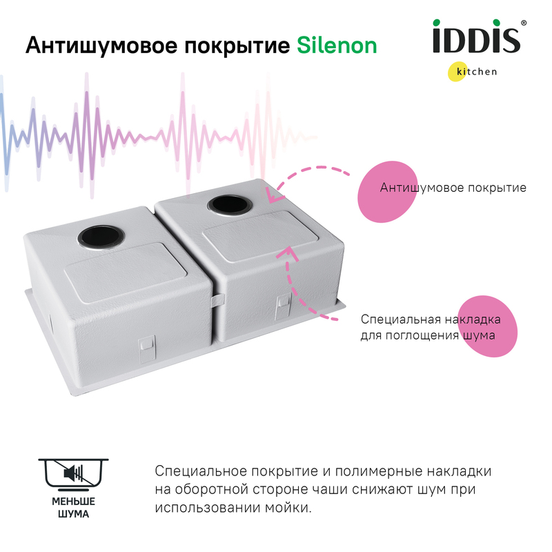 Уникальные преимущества: | Ручное производство сохраняет толщину стального листа. Уменьшенный радиус закругления углов позволяет увеличить объём чаши и рабочую площадь дна. Антишумовое покрытие Silenon снижает уровень шума |