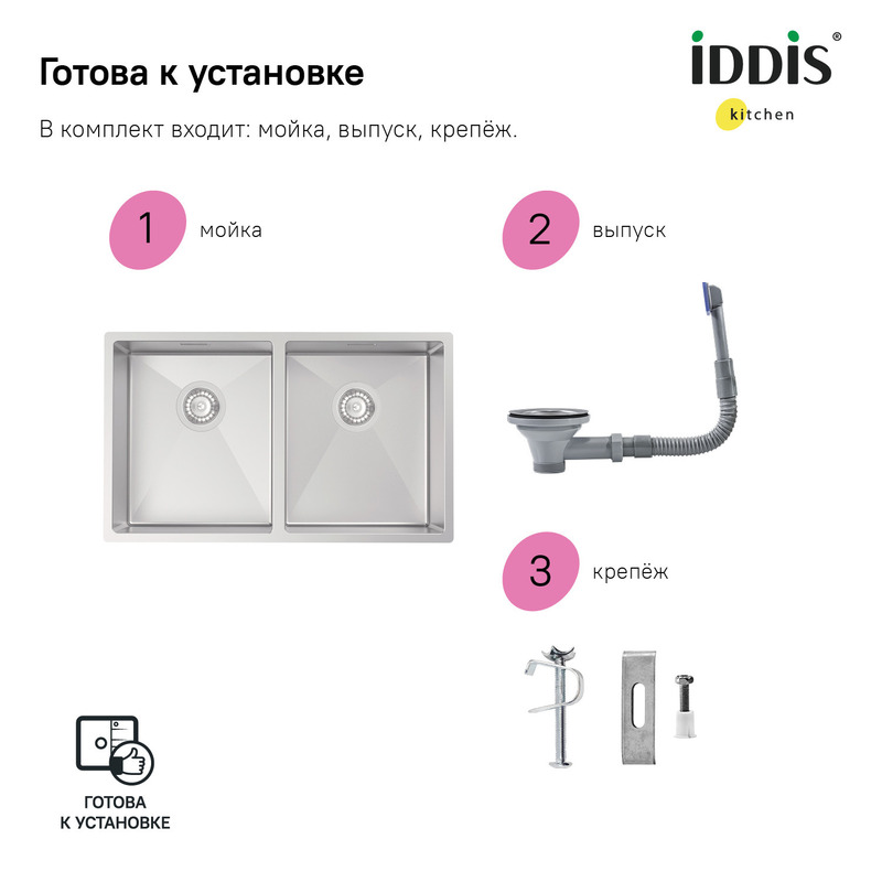 Большая мойка Edifice в сатиновом оттенке достойна кухни шеф-повара. Она перевернет представление о привычных кухонных мойках благодаря современному дизайну и эргономичности: у нее 2 полноценные чаши (340х400 мм). Для шкафа шириной от 80 см. • Универсальный монтаж: врезной и подстольный. • Произведена ручным методом – идеальная геометрия с малым радиусом скругления углов увеличивает рабочее пространство, сохранена толщина стального листа. Удобно мыть много посуды и крупные предметы. • В комплекте: 2 набора крепежей, выпуск. • Нержавеющая сталь 1,2 мм – надежность, ударопрочность, стойкость к износу. • Антишумовое покрытие и полимерные накладки на обороте снижают шум при использовании. • Идеально сочетается по цвету со смесителями IDDIS® ACEBNFFi05, RULSTLFi05, RULSTL0i05, K05STJ0i05, CUBSTP0i05, K05STL0i05, PURBNPFi05, GRABNFLi05. • Гарантия на мойку – 15 лет, на выпуск – 1 год. (с) Авторский текст, июнь 2021 г.