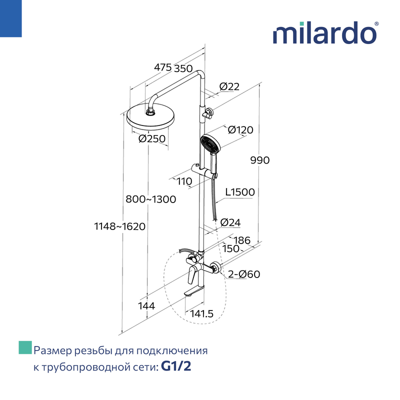 Коллекция Leap сочетает в себе угловатые формы с классическим хромированным покрытием. Ручка на корпусе душевой системы слегка приподнята, чтобы сделать регулировку потока еще более удобной. Большой диаметр (ø 250 мм) верхней лейки способствует равномерному распределению струи, а ее увеличенный вынос (350 мм) дарит максимальную свободу движений. Поворотный излив эстетично встроен в корпус, вода из него поступает в ванну под комфортным углом. • Качественный механизм смешивания воды смесителя Milardo® рассчитан на более чем 70 000 циклов работы – это не менее 15 лет эксплуатации семьей из трех человек. • Душевая лейка (5 режимов) с держателем, душевой шланг (1,5 м), штанга для душа с возможностью регулировки по высоте и крепеж идут в комплекте. • Оптимальная толщина никель-хромового покрытия защищает смеситель от образования трещин и сколов, продлевает срок его службы. • Гарантия на смеситель Milardo® – 7 лет, на картридж – 3 года, на душевые аксессуары – 1 год. (с) Авторский текст, февраль 2026 г.
