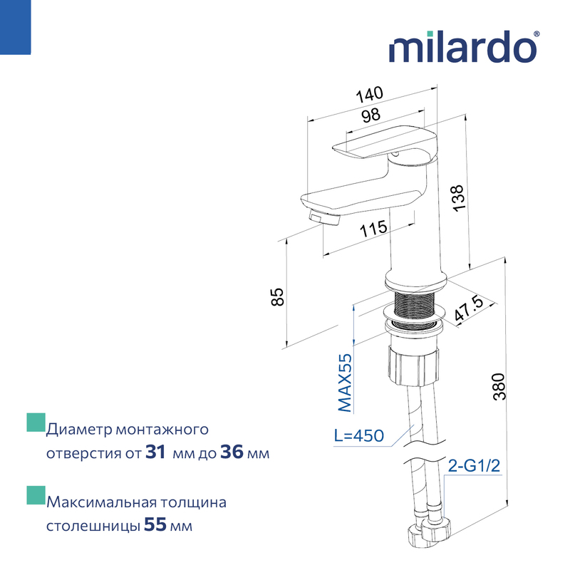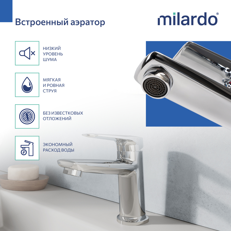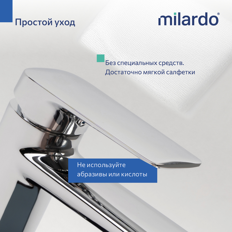 Коллекция Макс (Maks) — это гармония классических округлых очертаний и простой симметрии прямых линий. Что делает дизайн любого помещения уютным и гостеприимным. Увеличенный вынос излива смесителя для умывальника Макс (Maks) направляет поток воды в самую удобную точку раковины, обеспечивая максимальную свободу движения в зоне умывания. В комплекте гибкая подводка и крепеж. • Качественный механизм смешивания воды смесителя Milardo® рассчитан на более чем 70 000 циклов работы – это не менее 15 лет эксплуатации семьей из трех человек. • Оптимальная толщина никель-хромового покрытия защищает смеситель от образования трещин и сколов, продлевает срок его службы. • Гарантия на смеситель Milardo® – 7 лет, на картридж – 3 года. (с) Авторский текст, февраль 2026 г.
