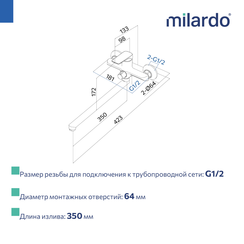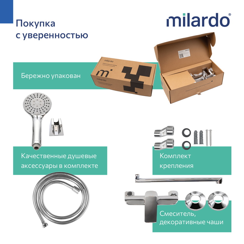 Смеситель для ванной Maks — это гармония классических округлых очертаний и простой симметрии прямых линий. Что делает дизайн любого помещения уютным и гостеприимным. С длинным (38 см) изливом использовать пространство ванной получается намного эффективней, а поворотный излив позволяет охватить большую ее площадь. • Поворотный дивертор работает при любом давлении воды, переключая поток воды с излива на трехрежимную душевую лейку. ПВХ-шланг (1,5 м) в оплетке из нержавеющей стали и крепеж идут в комплекте. • Качественный механизм смешивания воды смесителя Milardo® рассчитан на более чем 70 000 циклов работы – это не менее 15 лет эксплуатации семьей из трех человек. • Оптимальная толщина никель-хромового покрытия защищает смеситель от образования трещин и сколов, продлевает срок его службы. • Гарантия на смеситель Milardo® – 7 лет, на картридж – 3 года, на душевые аксессуары – 1 год. (с) Авторский текст, февраль 2026 г.