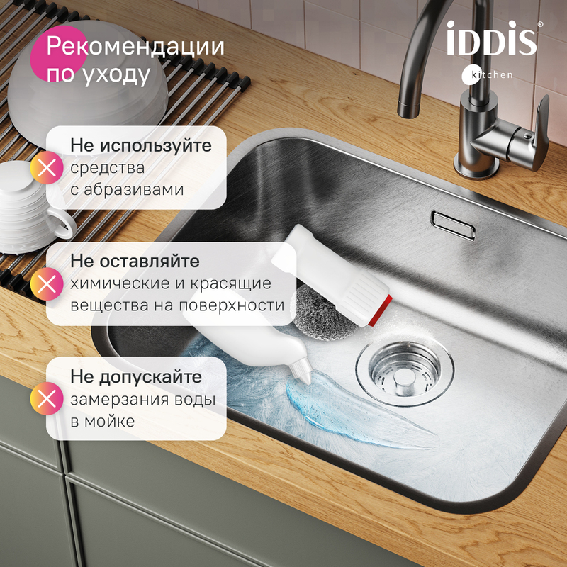 Сатиновая мойка из коллекции Mate – простое универсальное решение для современной кухни по привлекательной цене. Современный лаконичный дизайн без крыла. • Востребованный размер: мойка поместится в любой кухонный гарнитур от 60 см. • Качественная нержавеющая сталь AISI 304 толщиной 0,8 мм; сталь содержит 18% хрома и 8% никеля, что надежно защищает ее от коррозии. Стойкая к износу, выдерживает различные t, легко моется, долго служит. При правильном уходе надолго сохранит привлекательный внешний вид. • Специальное антишумовое покрытие и полимерные накладки на обороте чаши снижают шум при использовании. • Удобный универсальный монтаж на ваш выбор: врезным способом поверх столешницы (вырез под мойку составляет 517х417хR70 мм) или подстольный (вырез под мойку составляет 505х405хR71 мм). • Все необходимое для установки в комплекте: выпуск с переливом, плоский сифон, экономящий полезное пространство под мойкой и два комплекта крепежей (врезной и подстольный). Гарантия на мойки IDDIS® – 15 лет, на выпуск, крепления и сифон – 1 год. В зависимости от партии внешний вид мойки и ее комплектация могут незначительно отличаться. (с) Авторский текст, декабрь 2025 г.