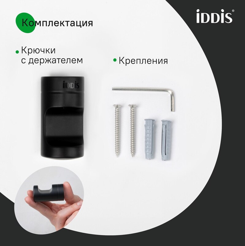 Каждый предмет из новой коллекции NOA минималистичен на вид и максимально функционален, благодаря чему способен выгодно подчеркнуть любой современный или классический дизайн. Коллекция представлена всеми необходимыми аксессуарами для создания единого стиля туалетной или ванной комнаты – с ними ежедневный уход станет еще более комфортным. Одинарный крючок трендового черного цвета будет элегантно смотреться в темных интерьерах и мягко балансировать яркие, цветные. Отличительная особенность аксессуара – оптимально рассчитанная геометрия и форма, позволяющие удобно разместить банные принадлежности. • Крючок IDDIS® прослужит дольше благодаря прочному и стойкому к коррозии сплаву металлов. • Крепежные элементы скрыты корпусом, что обеспечивает привлекательный и аккуратный внешний вид аксессуара. • Гарантия на аксессуары IDDIS® – 5 лет. (с) Авторский текст, май 2021 г.