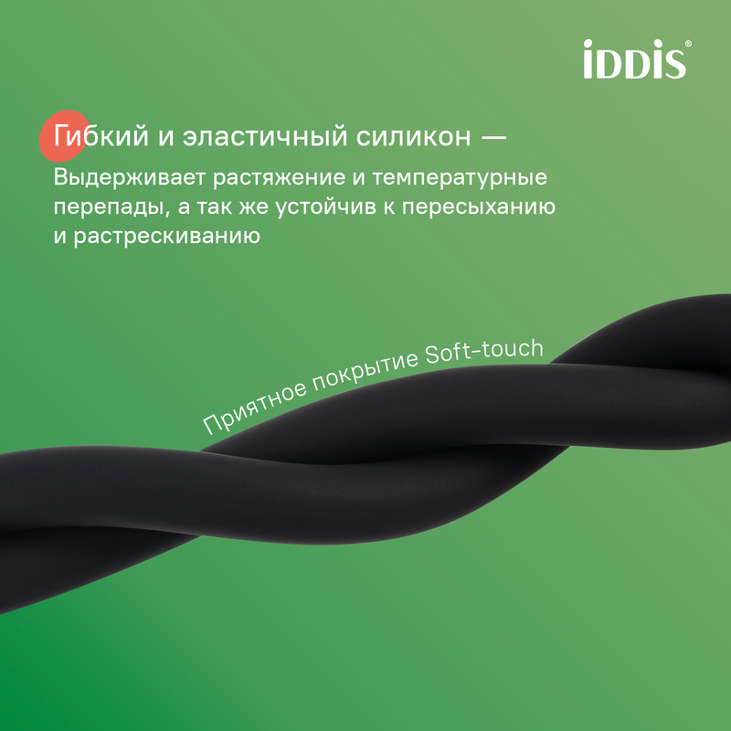 Ультрагибкий шланг с оболочкой из термостойкого силикона для ручных душевых леек. Универсальное соединение G ½” позволяет использовать с любой черной лейкой. Приятный на ощупь: очень гладкий и бархатистый. • Износостойкий и прочный, можно не бояться изгибов и заломов. • Гибкий и эластичный сразу при покупке – не требует отвисания и распрямления. Эстетично смотрится, удобно пользоваться. • Просто ухаживать: протирать салфеткой, можно с мягким моющим средством. Силикон не накапливает известь, не подвержен грибку. • Не оставляет царапин при контакте с ванной. • Стойкий цвет – краска глубоко и прочно проникает в силикон. • Надежно сидит в держателе за счет резинового уплотнительного кольца на конической гайке. Гарантия на душевые аксессуары IDDIS® – 3 года. (с) Авторский текст, август 2023 г.