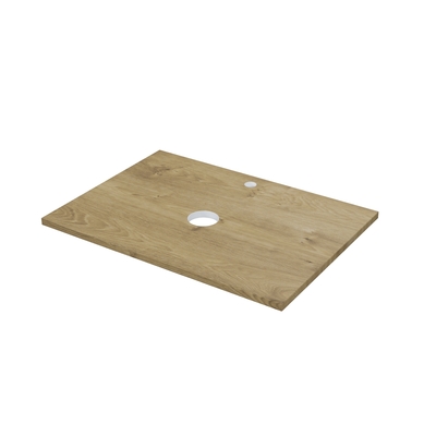 Прямоугольная столешница для тумбы в ванную комнату из МДФ с влагостойкой пленкой в красивом оттенке дуба верона. Отлично выдерживает использование в помещениях с повышенной влажностью. Идеально сочетается с тумбами IDDIS® Torr соответствующего размера (70 см). Совместима с любым накладным умывальником IDDIS®. • Имеет готовые отверстия для установки смесителя и умывальника, а также подключения сливной фурнитуры. Отверстия дополнительно обработаны изолирующим материалом для более надежной защиты контактной поверхности от влаги. • Дальнейшая установка раковины на столешницу осуществляется за счет приклеивания с помощью герметика, без дополнительных кронштейнов. • Крепление через шканты; идут в комплекте. Гарантия на мебель IDDIS® – 3 года. (с) Авторский текст, декабрь 2023 г.