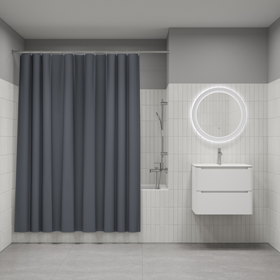 Однотонная непрозрачная штора для ванной графитового цвета. Изготовлена из современного материала PE – мягкого, прочного, приятного на ощупь, экологичного и безвредного для здоровья термопластика. • Без неприятного запаха, благодаря чему шторку для ванной можно использовать уже в день покупки. • 12 прозрачных пластиковых колец в комплекте, штора готова к использованию. • По верхнему краю 12 штампованных отверстий-люверсов – кольцо/крючок легко пройдет насквозь, не повредив шторы. • Материал PE на 100% водонепроницаем и надежно защищает от брызг, не подвержен развитию плесени и грибка. • Просто ухаживать: достаточно протереть салфеткой с мылом и промыть под душем. При этом штору можно даже не снимать с карниза. Гарантия на текстильные аксессуары IDDIS® – 1 год. (с) Авторский текст, апрель 2023 г.
