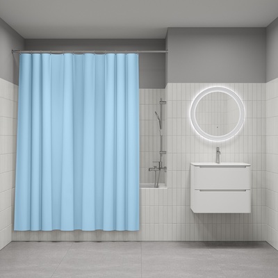 Однотонная непрозрачная штора для ванной небесно-голубого цвета. Изготовлена из современного материала PE – мягкого, прочного, приятного на ощупь, экологичного и безвредного для здоровья термопластика. • Без неприятного запаха, благодаря чему шторку для ванной можно использовать уже в день покупки. • 12 прозрачных пластиковых колец в комплекте, штора готова к использованию. • По верхнему краю 12 штампованных отверстий-люверсов – кольцо/крючок легко пройдет насквозь, не повредив шторы. • Материал PE на 100% водонепроницаем и надежно защищает от брызг, не подвержен развитию плесени и грибка. • Просто ухаживать: достаточно протереть салфеткой с мылом и промыть под душем. При этом штору можно даже не снимать с карниза. Гарантия на текстильные аксессуары IDDIS® – 1 год. (с) Авторский текст, апрель 2023 г.