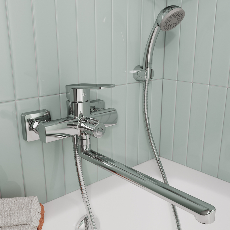 Смеситель Poli создан под проекты современных интерьеров: умеренно геометричные линии модели подойдут к сантехнике и мебели, как квадратных, так и скругленных форм. С длинным (29 см) изливом использовать пространство ванной получается намного эффективней, а поворотный излив позволяет охватить большую ее площадь. Цельный корпус смесителя для ванны выполнен из современного полимерного сплава, используемого для магистральных трубопроводов. Такой материал не содержит и не выделяет в воду вредные примеси; не разрушается под воздействием влаги, солей и хлора. Пластик обладает высокой термоустойчивостью, не нагревается и не обжигает при эксплуатации. Высокая ударопрочность сохраняется даже при экстремально низких температурах, что помогает подготовиться к дачному сезону в любых условиях или избежать протечек при отключении горячего водоснабжения в квартире. • Ручная однорежимная лейка, душевой шланг (1,5 м) в оплетке из нержавеющей стали и крепеж идут в комплекте. • Поворотный дивертор работает при любом давлении воды, переключая поток воды с излива на душевую лейку. • Оптимальная толщина никель-хромового покрытия защищает смеситель от образования трещин и сколов, продлевает срок его службы. • Гарантия на смеситель Milardo® – 5 лет, на картридж – 3 года. (с) Авторский текст, август 2025 г.