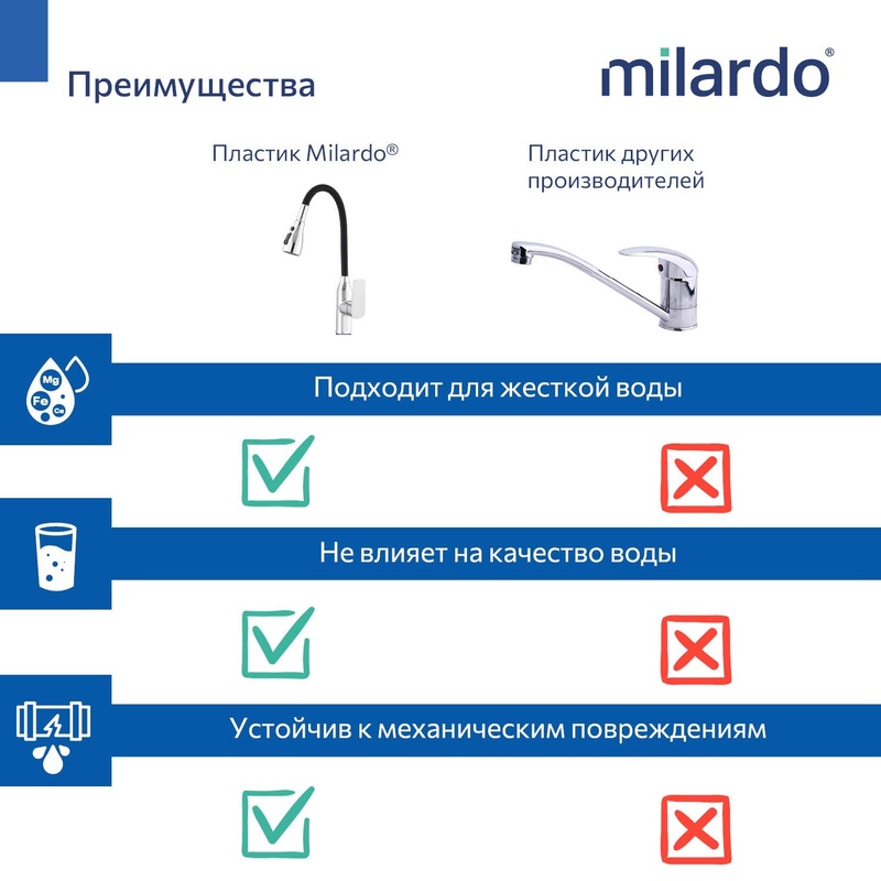 Milardo® – это всегда безопасная и доступная по цене сантехника. Продукция удовлетворяет потребности покупателей в качественной, надежной и доступной по цене сантехнике.
