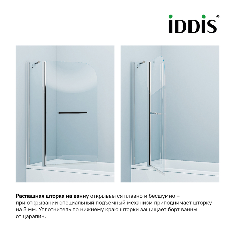 Стеклянная шторка для ванной комнаты Ray со стильным глянцевым алюминиевым профилем предназначена для установки на борт ванны. Имеет удобный регулируемый размер 1185-1200х1400 мм, позволяющий сгладить неровность стен до 15 мм. Установка шторки возможна как с правой, так и с левой стороны. - Алюминиевый профиль обеспечивает стабильность и надежность конструкции. - Прозрачное закаленное стекло толщиной 6 мм выдерживает случайные удары, что делает шторку надежной и безопасной в каждодневном использовании. - Благодаря водоотталкивающему покрытию вода не задерживается на стеклах, что исключает образование известкового налета и упрощает уход. - За счет надежного механизма шторка на ванну открывается плавно и бесшумно в течение всего срока службы. - Удобная ручка-полотенцесушитель из нержавеющей стали. - Конструкция оборудована специальным подъемным механизмом (подъем при открывании на 3 мм.). - Каркас жесткости из нержавеющей стали обеспечивает стабильность конструкции. - Гарантия на шторку на ванну IDDIS® — 2 года, чтобы вы были уверены в ее надежности и высоком качестве. (с) Авторский текст, ноябрь 2020 г.