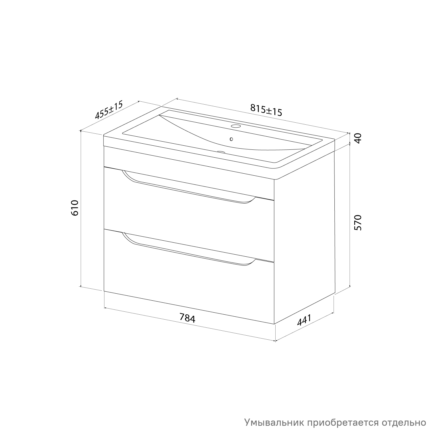 2. 959RAY80WDTMB | Фасад ящика (нижний), тумба подвесная, 80 см, белый, Ray |