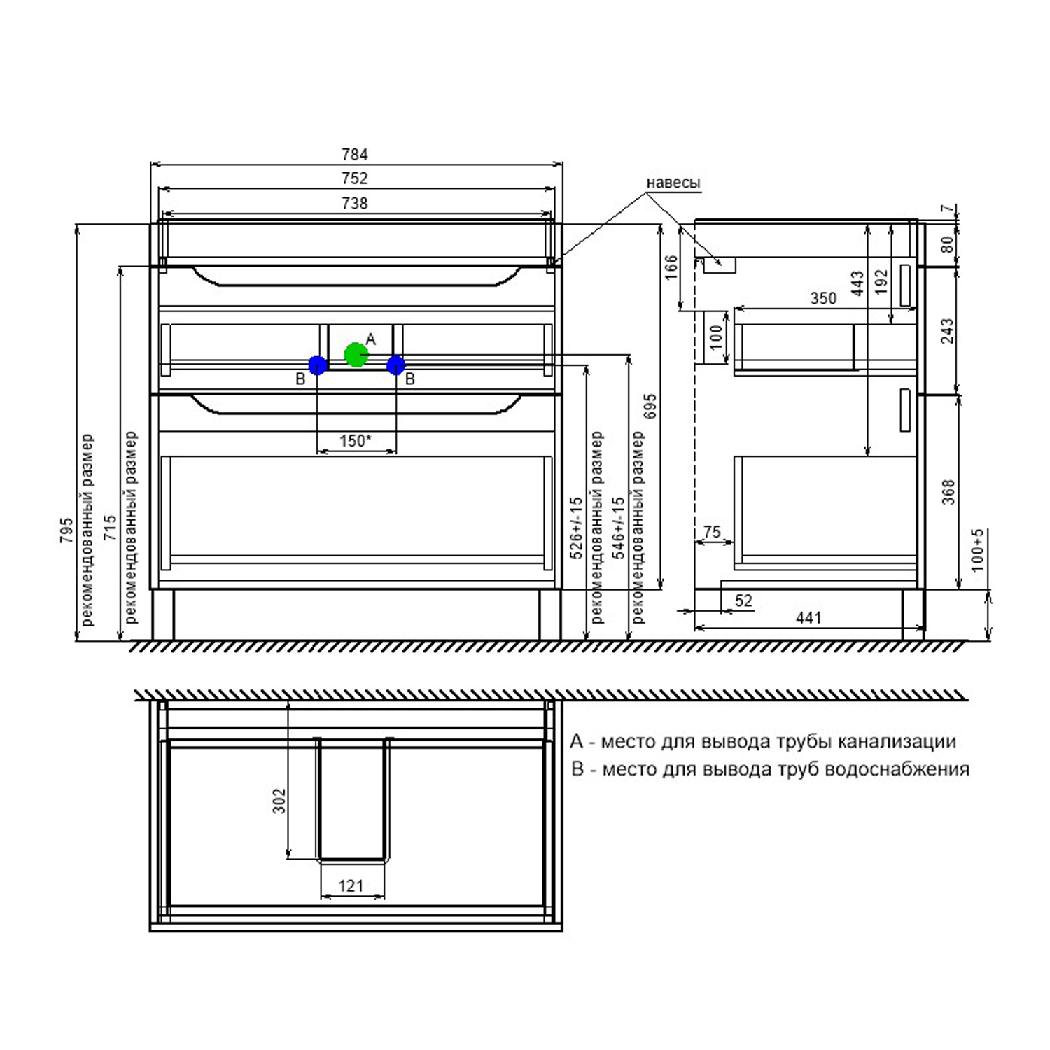 Высота изделия, мм: | 835 |