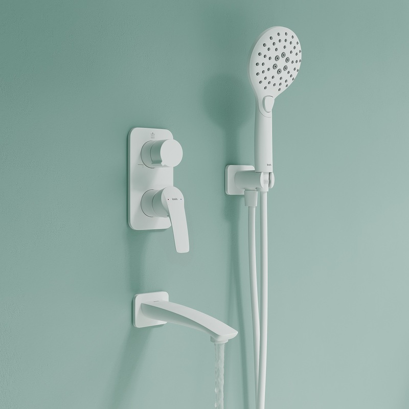Готовый набор встраиваемой сантехники в матовом белом цвете включает всё необходимое для обустройства комфортной и красивой душевой или ванны. Так выгоднее и удобнее, чем покупать всё по отдельности. Оптимальная подборка сантехники Ray: смеситель, верхняя лейка с кронштейном для тропического душа, настенный излив, большая ручная лейка с 3 режимами, душевой шланг 1,5 м и выход для подключения шланга с держателем для лейки. За счёт скрытого монтажа и отсутствия выступающих элементов набор экономит пространство и упрощает уборку. Подключение с помощью любых труб, диаметр входных отверстий – ½ дюйма. Смеситель прослужит долго благодаря надёжному корпусу из прочной латуни, стойкому к коррозии, резким изменениям давления и перепадам температуры воды. Лейки благодаря большому размеру делают поток воды объёмным и мягким, что создает эффект настоящего спа и обеспечивает максимум удовольствия от принятия душа. 3 режима ручной лейки меняются нажатием на кнопку. Цветное покрытие устойчиво к появлению царапин и выцветанию. На протяжении многих лет сантехника будет выглядеть как новая. Гарантия на смесители IDDIS® – 10 лет, на душевые аксессуары – 3 года. (с) Авторский текст, январь 2025 г.