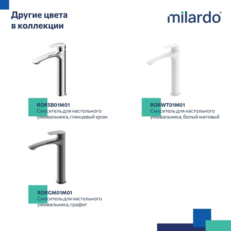 Смеситель для умывальника Рора (Rora) отличается универсальным характером: основной акцент в его дизайне приходится на плавные линии корпуса и трендовый цвет. Модель в черном цвете одинаково выигрышно смотрится на контрастных белоснежных раковинах и дополняет собой однотонную керамику. Конструкция высокого смесителя обеспечивает дополнительный комфорт в ежедневном использовании и подходит для установки с накладными раковинами-чашами. В комплекте гибкая подводка и крепеж. • Качественный механизм смешивания воды смесителя Milardo® рассчитан на более чем 70 000 циклов работы – это не менее 15 лет эксплуатации семьей из трех человек. • Электрофоретическое матовое покрытие делает поверхность смесителя устойчивой к условиям высокой влажности – такой смеситель прослужит дольше и сохранит свой первоначальный внешний вид. • Встроенный аэратор легко извлекается из корпуса смесителя с помощью обычной монетки, что значительно упрощает его очистку. • Гарантия на смеситель Milardo® – 7 лет, на картридж – 3 года. (с) Авторский текст, сентябрь 2022 г.