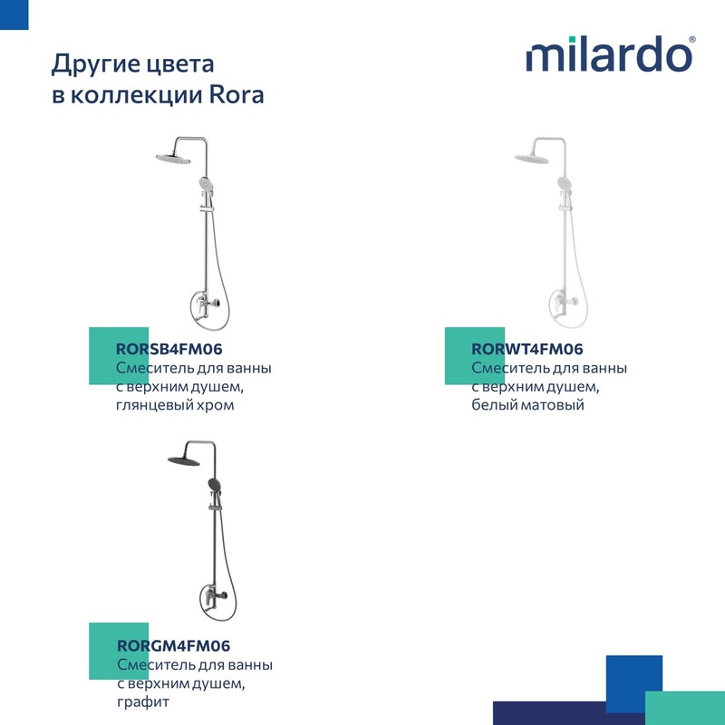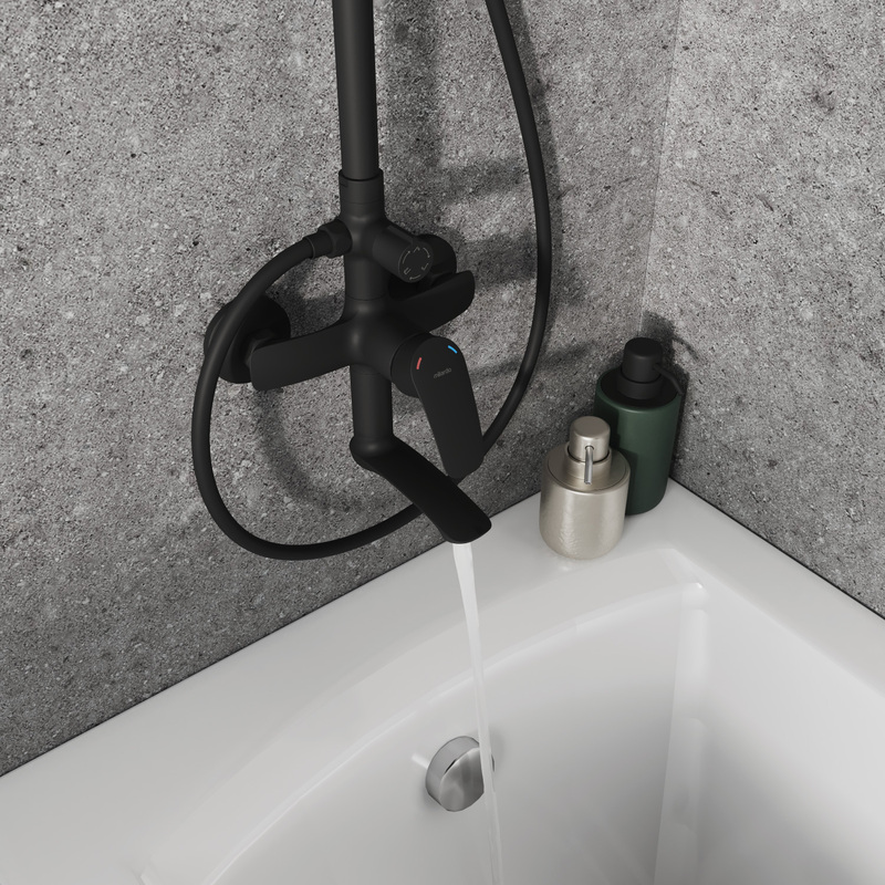 Смеситель для ванны Rora отличается универсальным характером: основной акцент в его дизайне приходится на плавные линии корпуса и трендовый черный цвет. Большой диаметр (ø 250 мм) верхней лейки способствует равномерному распределению струи. Увеличенный вынос верхнего душа (400 мм) дарит максимальную свободу движений. Поворотный излив эстетично встроен в корпус, вода из него поступает в ванну под комфортным углом. • 4-режимная ручная лейка (ø 120 мм) с держателем, душевой шланг (1,5 м), штанга для душа с возможностью регулировки по высоте и крепеж идут в комплекте. • Качественный механизм смешивания воды смесителя Milardo® рассчитан на более чем 70 000 циклов работы – это не менее 15 лет эксплуатации семьей из трех человек. • Электрофоретическое матовое покрытие делает поверхность смесителя устойчивой к условиям высокой влажности – такой смеситель прослужит дольше и сохранит свой первоначальный внешний вид. • Гарантия на смесители Milardo® – 7 лет, на картридж – 3 года, на душевые аксессуары – 1 год. (с) Авторский текст, сентябрь 2022 г.