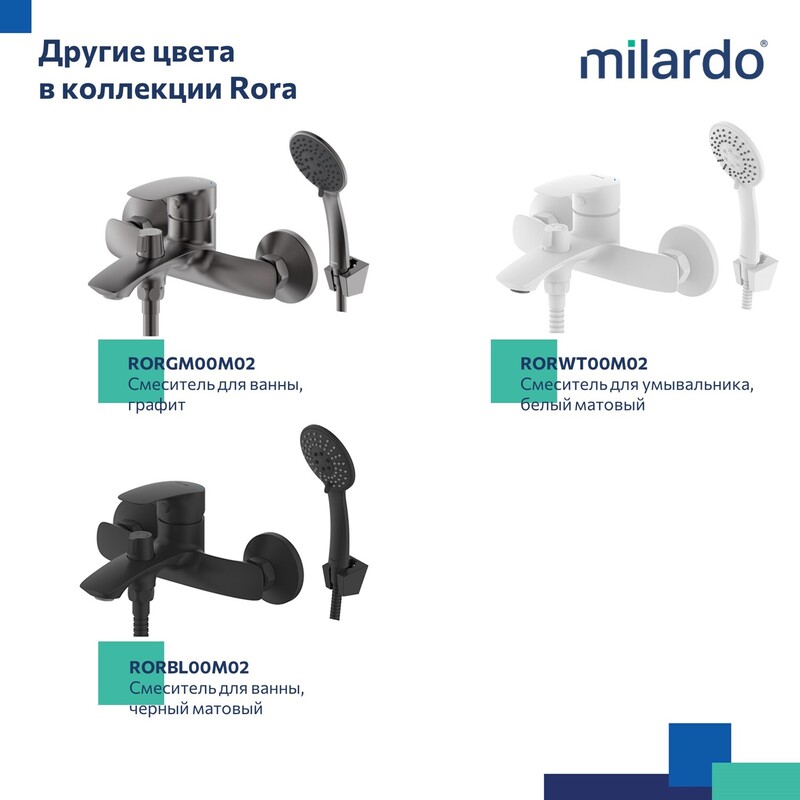 Смеситель для ванны Rora отличается универсальным характером: основной акцент в его дизайне приходится на плавные линии корпуса и классическое цветовое решение. Модель с коротким фиксированным изливом надежна и удобна в ежедневном использовании. Интенсивность и температура потока легко регулируются удобной ручкой смесителя. Поворотный дивертор работает при любом давлении воды, переключая поток воды на большую душевую лейку (ø 100 мм) или в комбинированном режиме. • Ручная лейка из прочного ABS-пластика, ПВХ-шланг (1,5 м) в оплетке из нержавеющей стали и крепеж идут в комплекте. • Качественный механизм смешивания воды смесителя Milardo® рассчитан на более чем 70 000 циклов работы – это не менее 15 лет эксплуатации семьей из трех человек. • Оптимальная толщина никель-хромового покрытия защищает смеситель от образования трещин и сколов, продлевает срок его службы. • Гарантия на смеситель Milardo® – 7 лет, на картридж – 3 года, на душевые аксессуары – 1 год. (с) Авторский текст, сентябрь 2022 г.